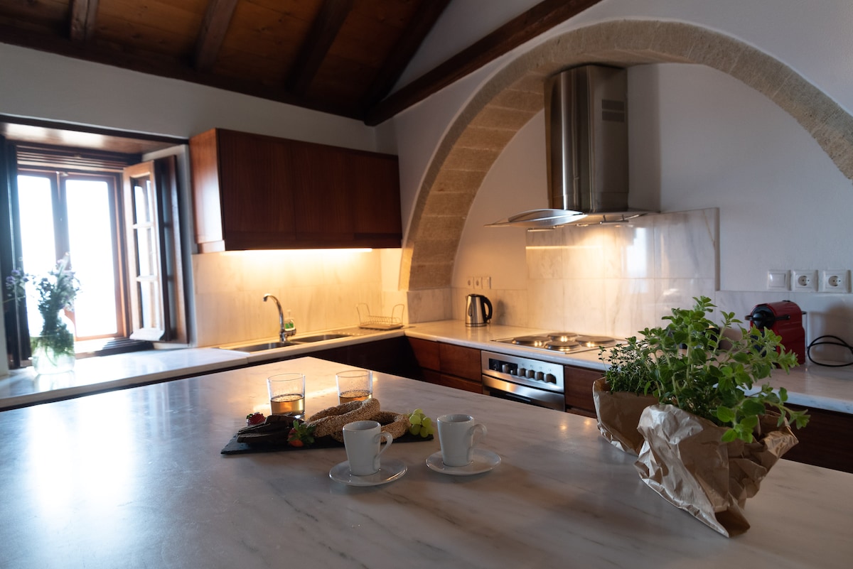 Un viaje a través de la historia en la poderosa fortaleza medieval de Monemvasia. Este dúplex de 44 metros cuadrados, que forma parte de la casa de mi familia del siglo XIX, cuenta con un baño, una cocina y una gran terraza panorámica con una vista asombrosa de Myrtoon Pelagos y la propia ciudad.
