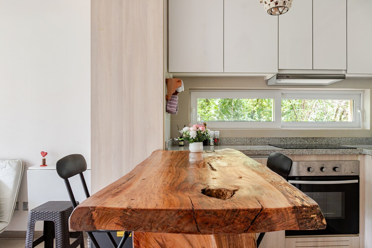 Disfruta de un descanso real en un entorno rodeado de árboles. Nuestro departamento combina la comodidad de un espacio integrado con una espectacular terraza de 11 m2 equipada con sillones, ideal para relajarse al aire libre sin alejarse de los servicios de Pucón. Fácil acceso al camino del Centro de Sky y Ruta de las Termas. Ubicado en una zona donde predomina el verde y el canto de los pájaros, lejos del bullicio directo del centro, pero con acceso rápido a todo.