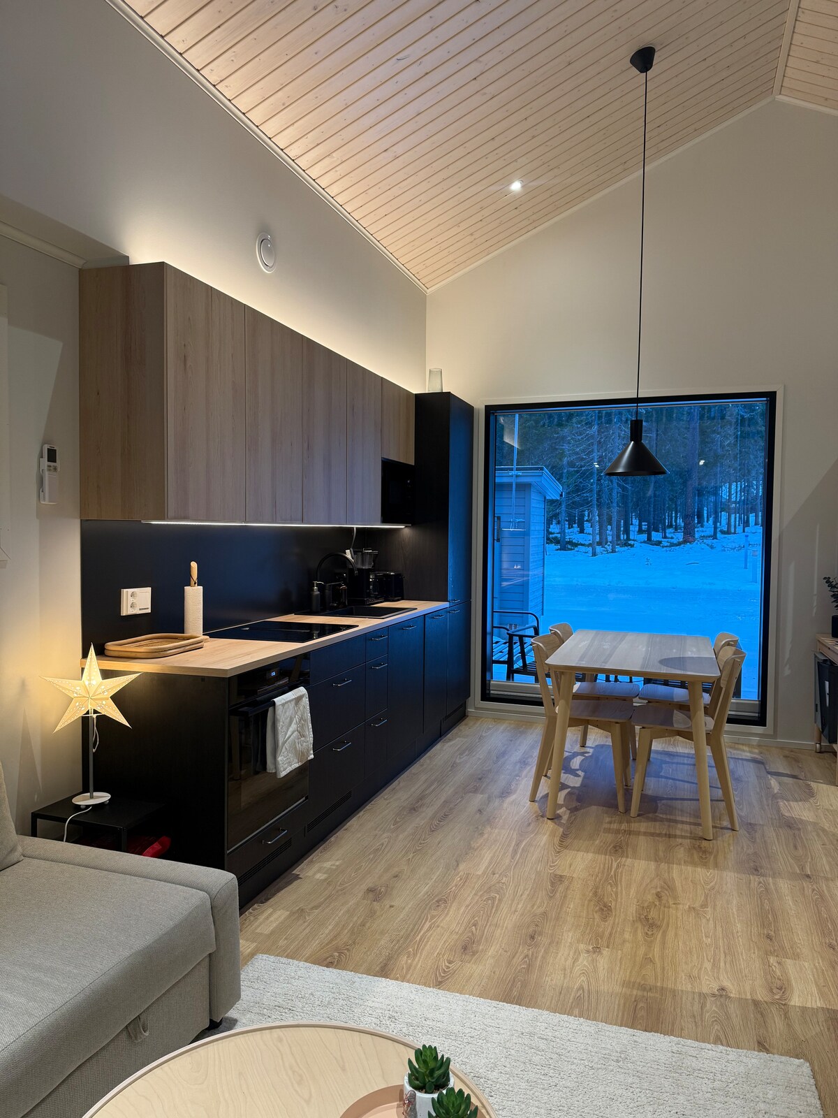 Te damos la bienvenida al acogedor nido de búhos en la parte superior de Iso-Syöte. El apartamento encanta con un ambiente cálido y vistas impresionantes desde la ventana. La ubicación es perfecta para un turista activo. Puedes acceder a las pistas directamente desde la puerta principal, los senderos comienzan a 300 m de distancia. Una verdadera estancia con acceso a las pistas de esquí. El espacio es el más adecuado para una pareja o una familia pequeña. Todos los lugares para dormir están ubicados en el loft. La cocina pequeña se renovó en el otoño de 2023. En la cocina encontrarás todo lo que necesitas para cocinar.