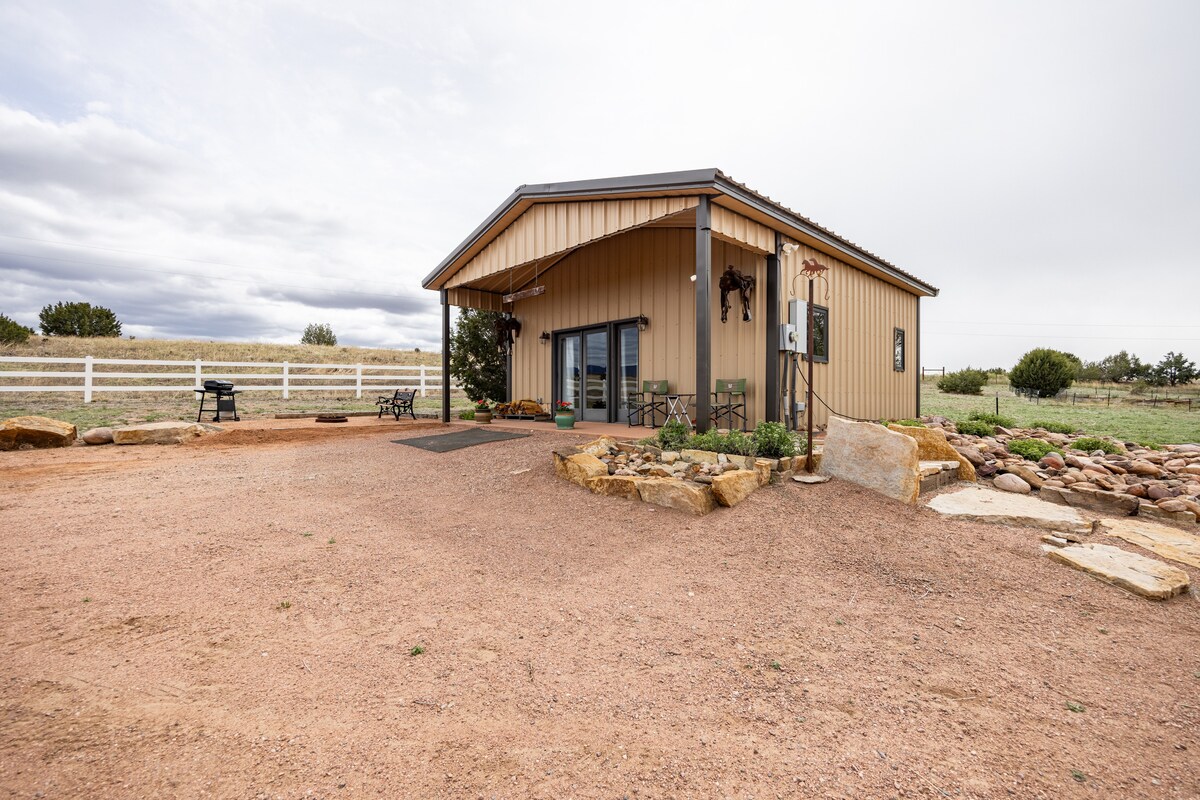 Barrio tranquilo situado en Pueblo West. Se encuentra muy cerca de nuestra casa. ¡Esta es una casa diminuta muy pequeña, pero recién renovada! Una habitación de 12' x 16', cama tamaño queen, ducha de buen tamaño e inodoro con puerta de granero para mayor privacidad en el baño. Barra con dos taburetes, TV inteligente con chimenea eléctrica en la esquina que le da un toque de romanticismo. Sofá de dos plazas con otomana. Pequeño loft en el que los niños pueden dormir en estancias cortas. Cafetera pequeña, nevera bajo la encimera y espejo de buen tamaño sobre el fregadero de granja.