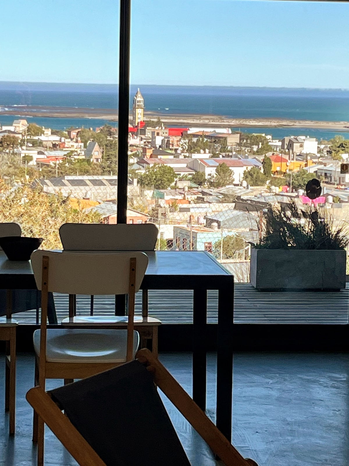 Disfruta de una estadía de lujo, estamos ubicados en lo alto de Puerto Deseado, con excelente VISTA A LA CIUDAD Y EL MAR, de estilo minimalista, completamente amoblados y equipados, con todo lo que necesitas para una estadía placentera, el dúplex tiene 74 m2, esta distribuidos en dos niveles: Planta baja: Estar con sofá, cocina/ comedor con salida a deck. Planta alta: Dormitorio principal con somier queen size, otro dormitorio con dos somieres individuales y baño.