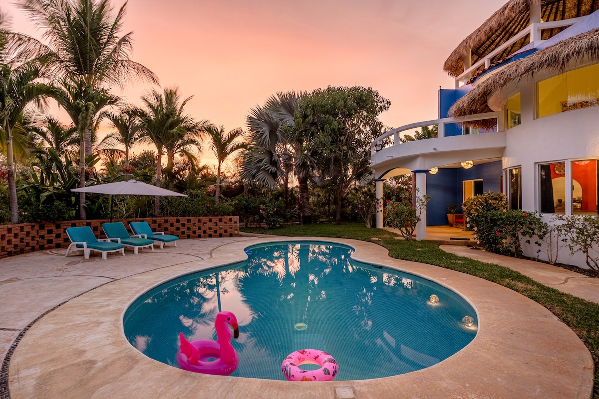 Renovada con 2 cuartos extras en 2024! Escapa a tu paraíso privado, a pasos de la Playa Palmarito, en Puerto Escondido México. Con tres habitaciones, cada una con cama Queen, este refugio ofrece vistas impresionantes al océano. Disfruta de las comodidades del aire acondicionado, cocinetas interna y externa, y un amplio patio con torre de playa y piscina privada. Desconéctate y sumérgete en la belleza del Océano Pacífico.