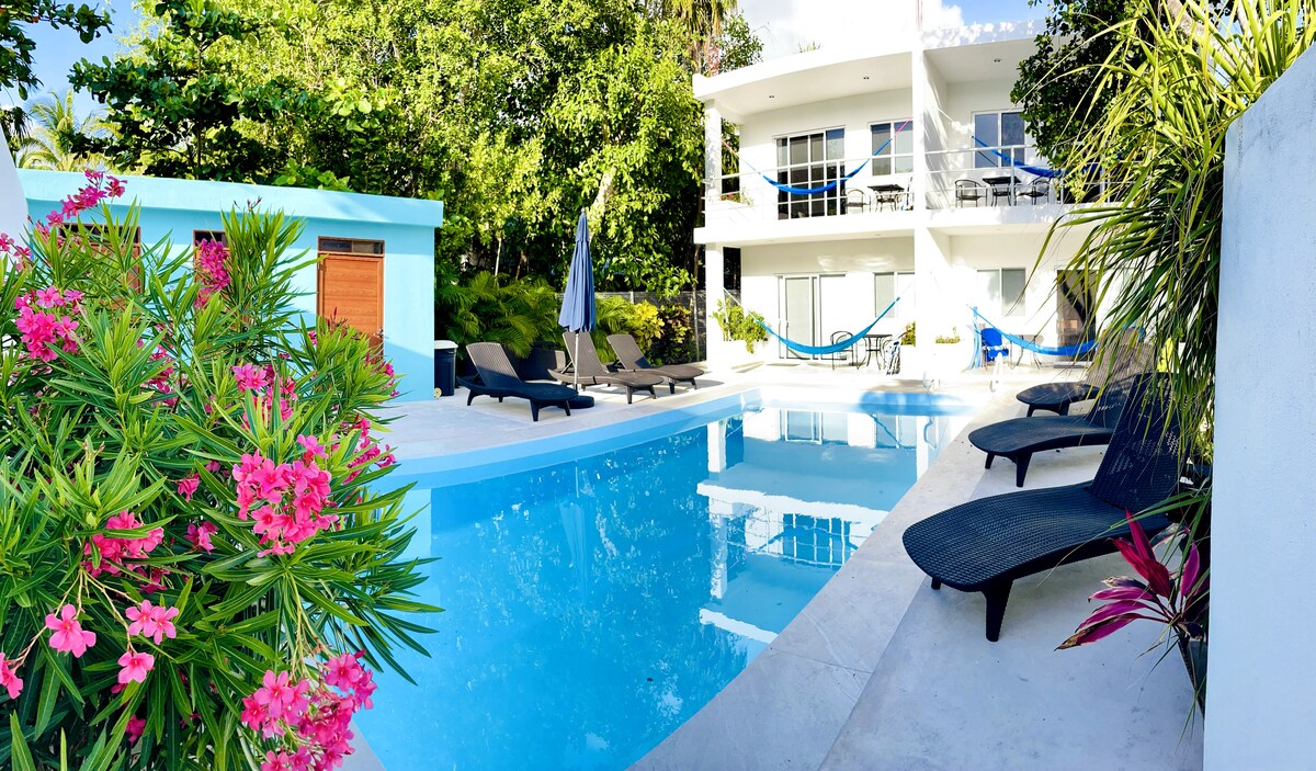 Escápate a nuestro luminoso y acogedor apartamento de 1 dormitorio a pocos pasos de la playa. Relájate junto a la piscina, bebe vino en tu patio privado o duerme la siesta en la hamaca. Con una cama tamaño king, cocina completa, Smart TV, aire acondicionado y wifi, es perfecto para una escapada romántica o un retiro en solitario. Ubicado en un barrio tranquilo y seguro, a solo 2,5 km (1,5 millas) del centro de la ciudad. Disfruta de un fácil acceso a lugares para practicar esnórquel y vibrantes mercados locales. Envíanos un mensaje si tus fechas no están disponibles, ya que es posible que tengamos otra unidad que sí lo esté.