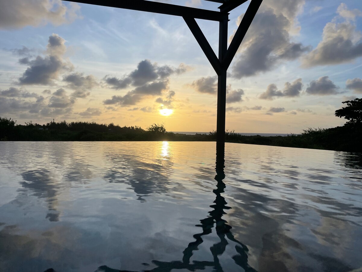 Disfruta de los rayos desde la comodidad de una tumbona antes de saltar a la refrescante piscina al aire libre situada en lo alto de una colina pintoresca. En el interior, los detalles de azulejos de arenisca y colores azules se mezclan con decoración náutica en esta tranquila casa con un diseño abierto. Villa Diane se encuentra en un barrio muy tranquilo. Tiene vistas increíbles al océano mientras te relajas en la piscina o en tu patio privado. A pocos minutos a pie por la carretera hay muchos restaurantes y bares de playa diferentes.