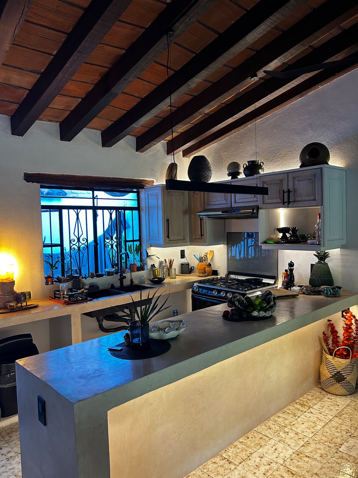 Casa Palma Properties presents our new gem situated in Cinco Decembre *5min walk to beach* . Curated by our in-house design team this swanky refuge offers a wholistic recharge 2x King Rooms 2x Baths Ocean View Balcony off front room. It has everything needed for a sunny getaway. Enjoy the kitchen, ample living/garden areas (3 outdoor spaces). Laundry, street parking, air conditioning, Wi-Fi you name it you have everything you will need to tap into the nightlife, nature, and seaside adventures