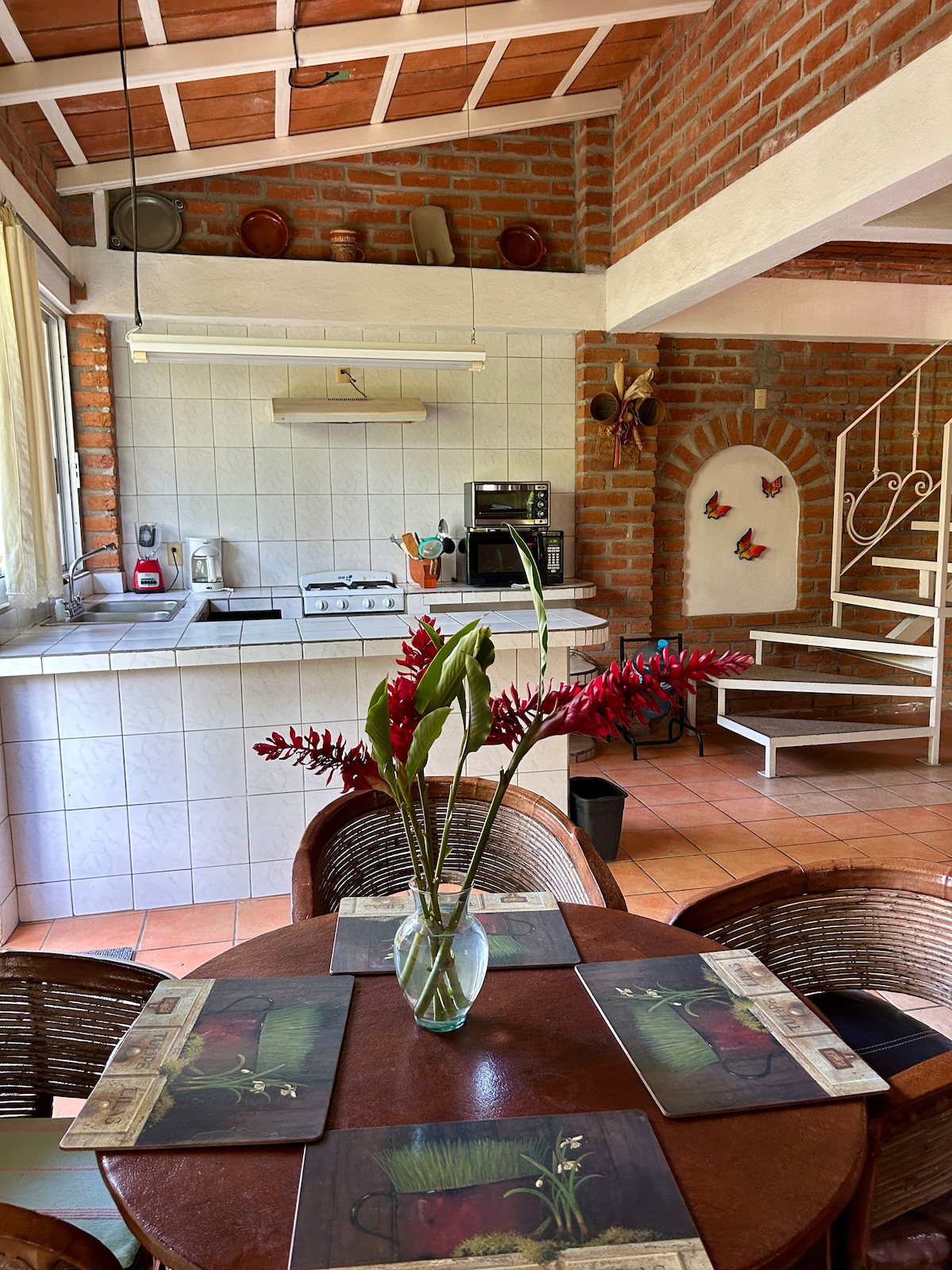 Bellísima casa estilo hacienda, con 5 estudios separados equipados para parejas o grupos completos. Mascotas bienvenidas. Con opción de rentarla completa (20personas) o por habitación. A 5 mins de la Marina de Riviera Nayarit y de la playa La Manzanilla, 25 mins al aeropuerto y 20 mins al pueblo de Sayulita, Bucerias y Punta Mita muy cerca, todo el comfort que necesitas para sentirte en casa o trabajar si necesitas. las playas mas bonitas y los mejores spots de surf muy cerca.
