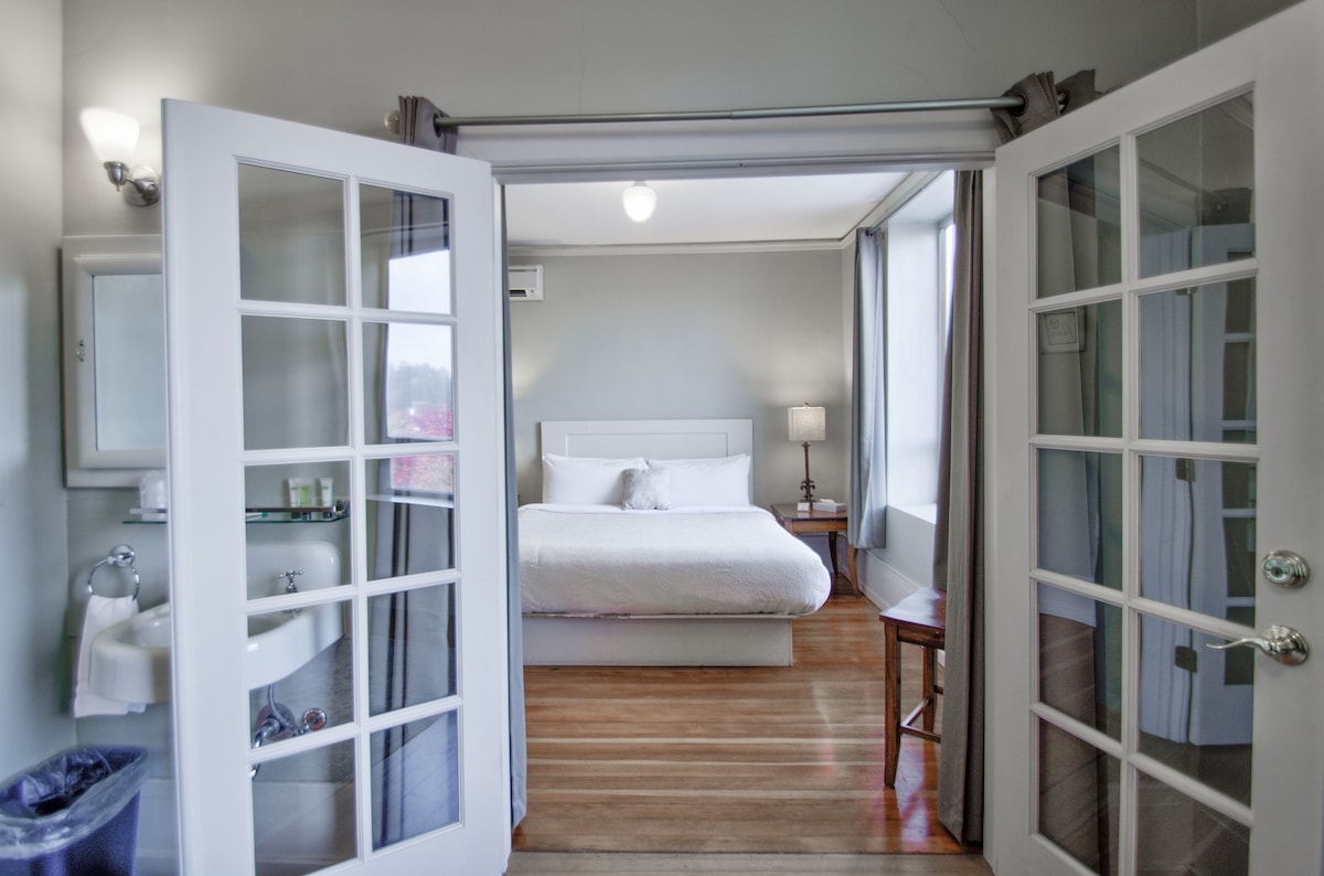 La habitación Queen Bee es cálida y acogedora, disfrutarás de su simple sensación exuberante, habitación suave y relajante con acentos cálidos para ayudarte a sentirte como en casa. Bonito y cálido durante el invierno y con aire acondicionado durante el verano. Se proporciona ropa de cama, albornoces suaves, mantas acogedoras y almohadas suaves. Nuestro edificio fue construido como un hotel en 1904 y justo a la vuelta de la esquina hay baños para huéspedes, que es realmente una experiencia de ducha divina.