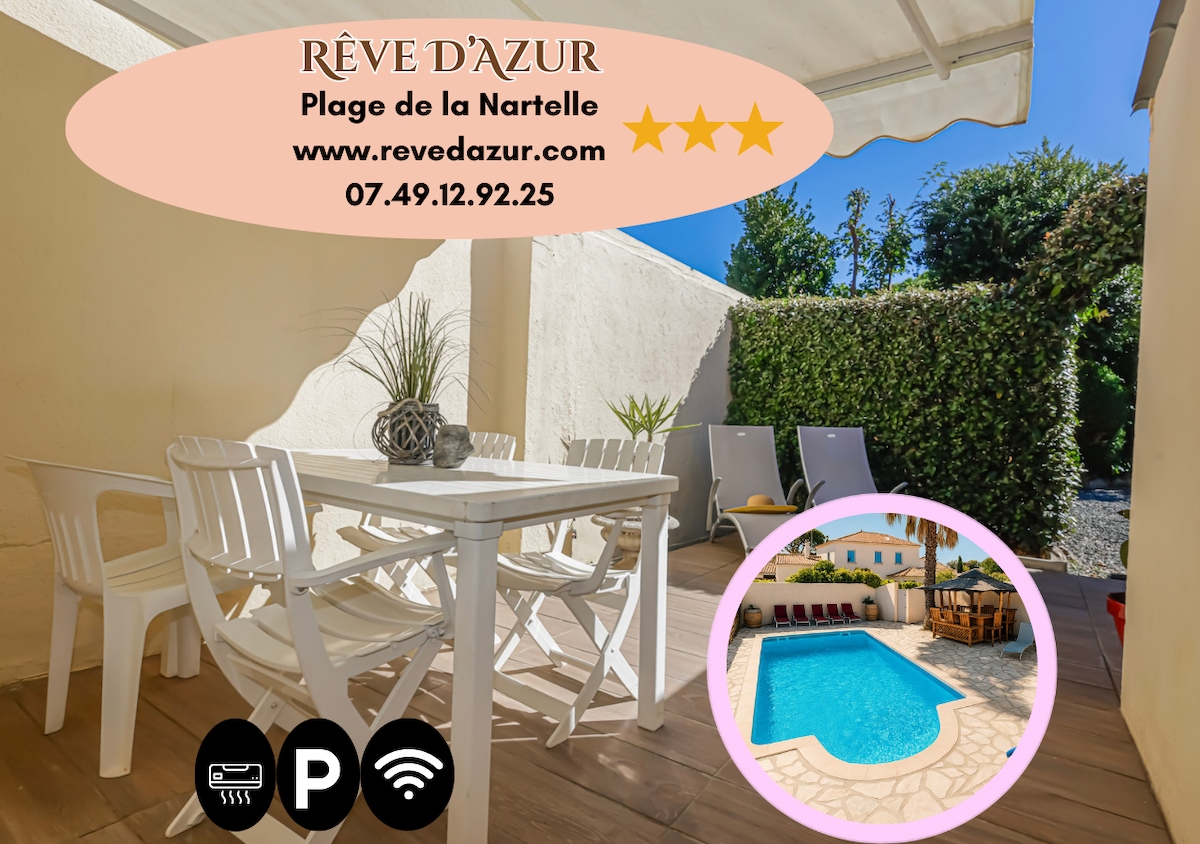Mazet 35 m² Playa a pie Piscina y Aire Acondicionado, Aparcamiento