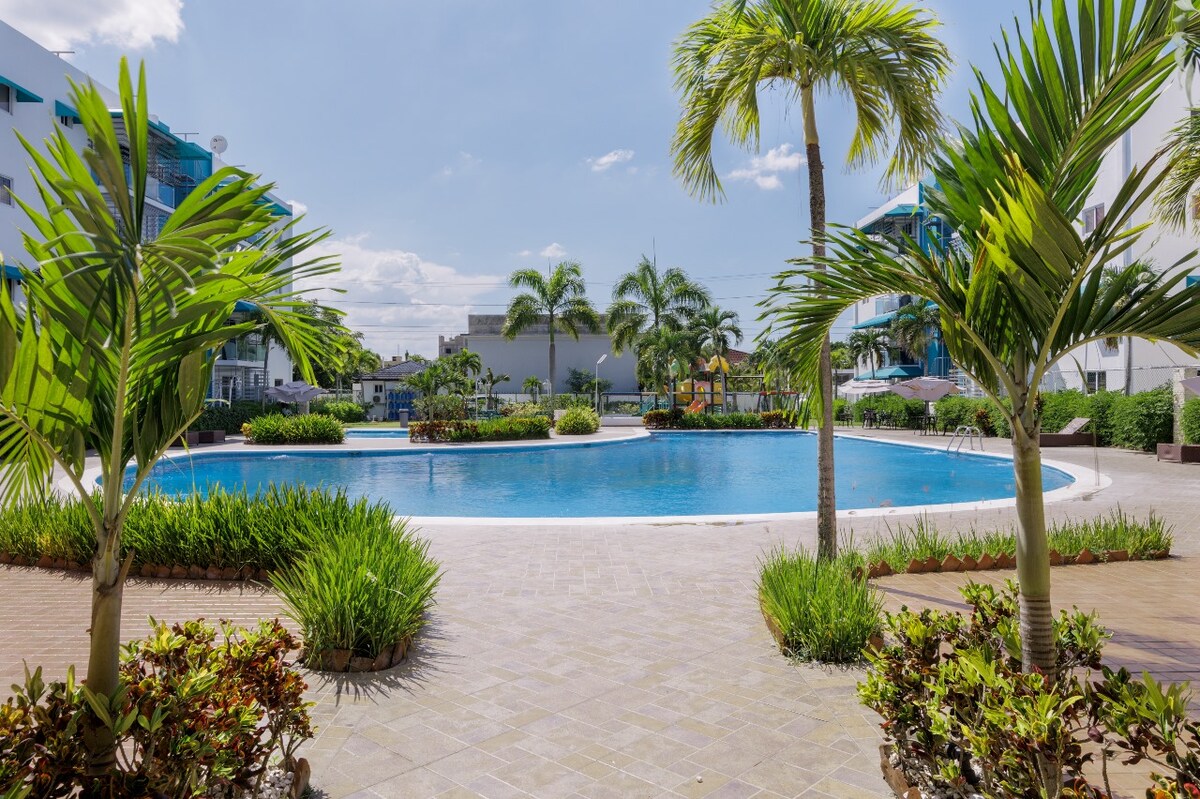 Nuevo y moderno apt, espacio cómodo y bien iluminado Cocina bien equipada y un baño limpio y espacioso, Parqueo privado y seguro con seguridad 24/7. , localizado a 10 min del Aeropuerto, centro de ciudad ect perfecto para disfrutar de un espacio comodo y tranquilo con toda su familia equipado con 3 dormitorios con tv wifi y aire acondicionado, Tenemos salon de eventos privados, piscina, villar, gimnasio, area de BBQ, area de juego para niños, cancha de basketball, wifi.