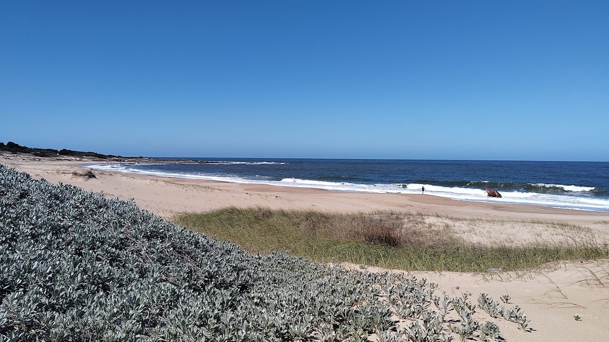 Casa nueva a solo 1 cuadra de la playa de Punta Colorada. Excelente iluminación. Cuenta con: • Wifi • Estufa de alto rendimiento • Aire acondicionado en el cuarto • TV con Netflix • Antena de direct Tv (recarga a cargo del huésped) • Parrillero individual • Microondas, tostadora, cafetera. • Ropa de cama y toallas