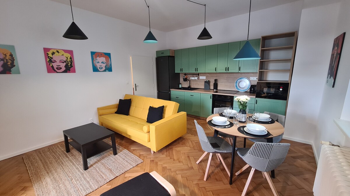 Hola :) Los huéspedes dicen que el apartamento es agradable, soleado y con buena energía. :) Tienes todo el apartamento para ti. El apartamento tiene un balcón verde, una gran sala de estar, un baño, un aseo y una cocina encantadora :) (63 m2) El estacionamiento es gratuito frente al apartamento y los huéspedes tienen una toalla, cosméticos, café, té y otros artículos pequeños GRATIS... El apartamento es antiguo pero está limpio y huele bien, por lo que los huéspedes se sienten bien aquí. Espero con muchas ganas tu visita :)