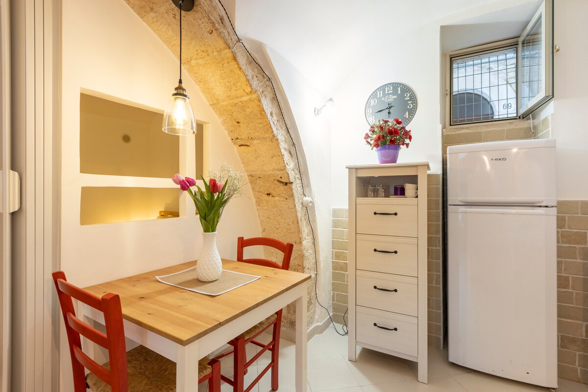 Apartamento renovado en el primer centro histórico de Ceglie Messapica, a 100 m de la animada Piazza Plebiscito. Situado en la planta baja de un edificio de piedra del siglo XVIII, conserva las típicas bóvedas de estrella expuestas. El ambiente es naturalmente fresco y confortable, gracias a la estructura de piedra que mantiene una temperatura agradable incluso en los meses más cálidos. Hay un ventilador disponible para mayor comodidad. Perfecto para quienes buscan autenticidad y tranquilidad en una ubicación céntrica.