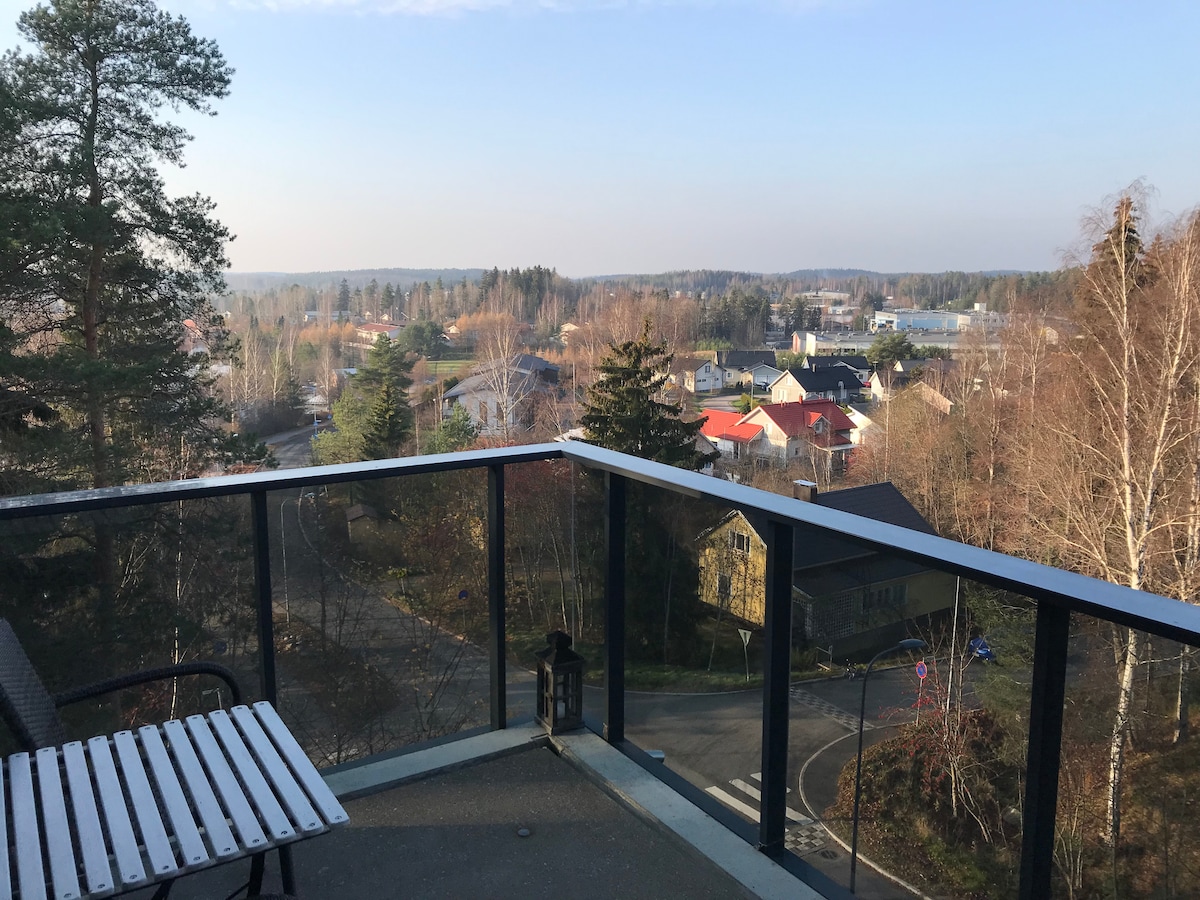 Bienvenido a una acogedora casa adosada en la tranquila zona de Puistonmäki. Disfrute del calor de la sauna y del gran balcón acristalado. El apartamento cuenta con una cocina totalmente equipada y una parrilla. La bomba de calor de aire y la calefacción por suelo radiante aportan comodidad en los días de calor y de frío. Alrededor del apartamento hay excelentes oportunidades para correr con vistas al lago. Aulanko se encuentra al otro lado del lago, a poca distancia a pie. Plaza de aparcamiento gratuita a tu disposición.