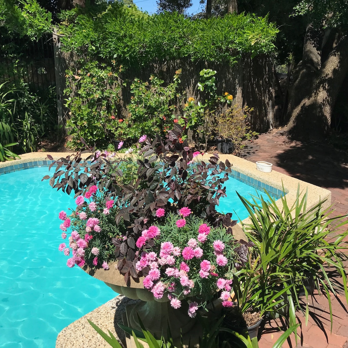 Al llegar a través de puertas antiguas, pasee por la pasarela cubierta de glicinas hasta su hogar lejos de casa. El área cubierta al aire libre con espacio de comedor/sala de estar, iluminada por las noches con faroles de seda, te invita a salir para una ocasión especial. Casa de campo llena de luz, salón-comedor de planta abierta. El dormitorio cuenta con una lujosa cama tamaño queen para una noche de sueño reparador. El baño invita a la indulgencia con una ducha de lluvia tropical. Cocina totalmente equipada con lavadora. Detalles bien pensados en todas partes.