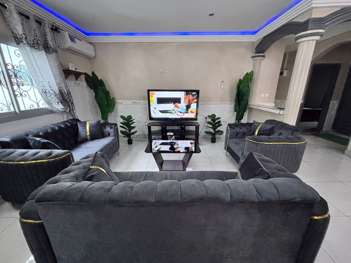 Si vous aimez l'interactivité, être dans une zone où vous pouvez faire une ballade à pieds ou en voiture, aller à la salle de sport ou au supermarché en 2min, avoir à proximité tous les bons coins de la ville (restaurants, lounge, night club, pharmacie..); cet appartement sera parfait pour vous. Ce qui fait son charme est qu’il est lumineux, spacieux(160m2 de surface total),et très bonne localisation. Cuisine, équipées. accès facile et bitumé. Wifi disponible , TV Canal+ . Bienvenue chez nous.
