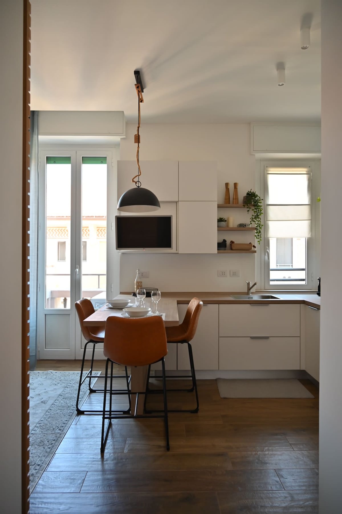 Relájate y recarga energías en este oasis de tranquilidad y elegancia. En el octavo y último piso, apartamento recién reformado equipado con todas las comodidades para que tu estancia en Milán sea especial. Situado en el barrio judío, una de las zonas residenciales más tranquilas, mejor comunicadas y prestigiosas de la ciudad, se encuentra a solo 300 metros de la estación de metro azul «Piazza Frattini», que en menos de 15 minutos te lleva al centro en Piazza San Babila y Duomo o Navigli. ¡Estamos deseando recibirte!