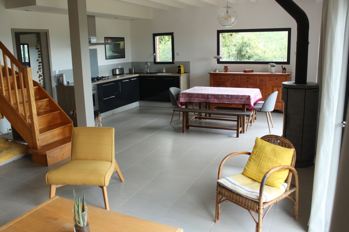 Nuestra casa de campo con carácter es un encantador granero restaurado construido en 1827, que disfruta de gloriosas vistas elevadas orientadas al sur sobre las laderas a un pintoresco pueblo muy por debajo. La casa de campo, llena de luz y espaciosa, tiene 90 m2, dormitorios generosos, una gran sala de estar de planta abierta y cocina completa. Impresionantes vistas desde todas las habitaciones y la piscina. Desayuno continental incluido. Una base excelente para explorar y «alejarse de todo» en la Francia rural, sin dejar de estar cerca de lugares de interés increíbles y a 5 minutos de los servicios.