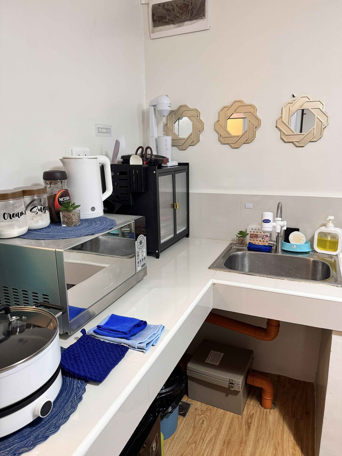 Esta ubicación está cerrada y vigilada las 24 horas del día, los 7 días de la semana. Es una zona de inundación gratuita. Recientemente renovado, amueblado, zona de aparcamiento, cocina equipada con nevera nueva, cocina eléctrica, microondas, freidora de aire, horno, olla arrocera, lavadora y WIFI. Distancia a pie al centro comercial Ayala, comestibles y escuelas privadas. A poca distancia a pie de comida rápida, farmacia, restaurante lujoso y accesible al transporte.