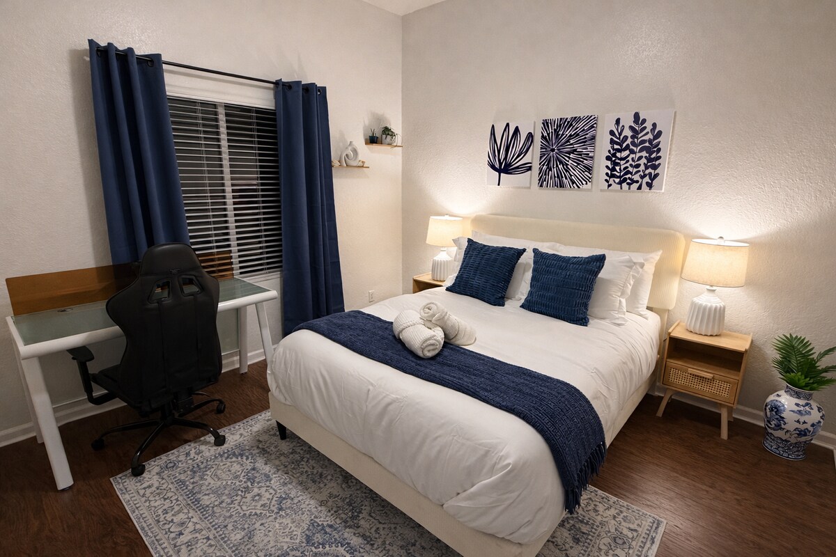 Elegante / cómodo, conveniente Sala de estar luminosa y cuidadosamente decorada Cocina totalmente equipada para comidas caseras Wifi rápido: perfecto para el trabajo a distancia o la transmisión Tienda, cena y exploración: ubicado a pocos minutos de tiendas populares como TJ Maxx, Marshalls, Target y otros lugares favoritos del centro comercial. También estarás cerca de tiendas de comestibles, cafeterías y una variedad de restaurantes. La playa está a poca distancia en auto, por lo que es fácil disfrutar de lo mejor de Florida en un solo viaje. Ideal para estadías de negocios o de placer.