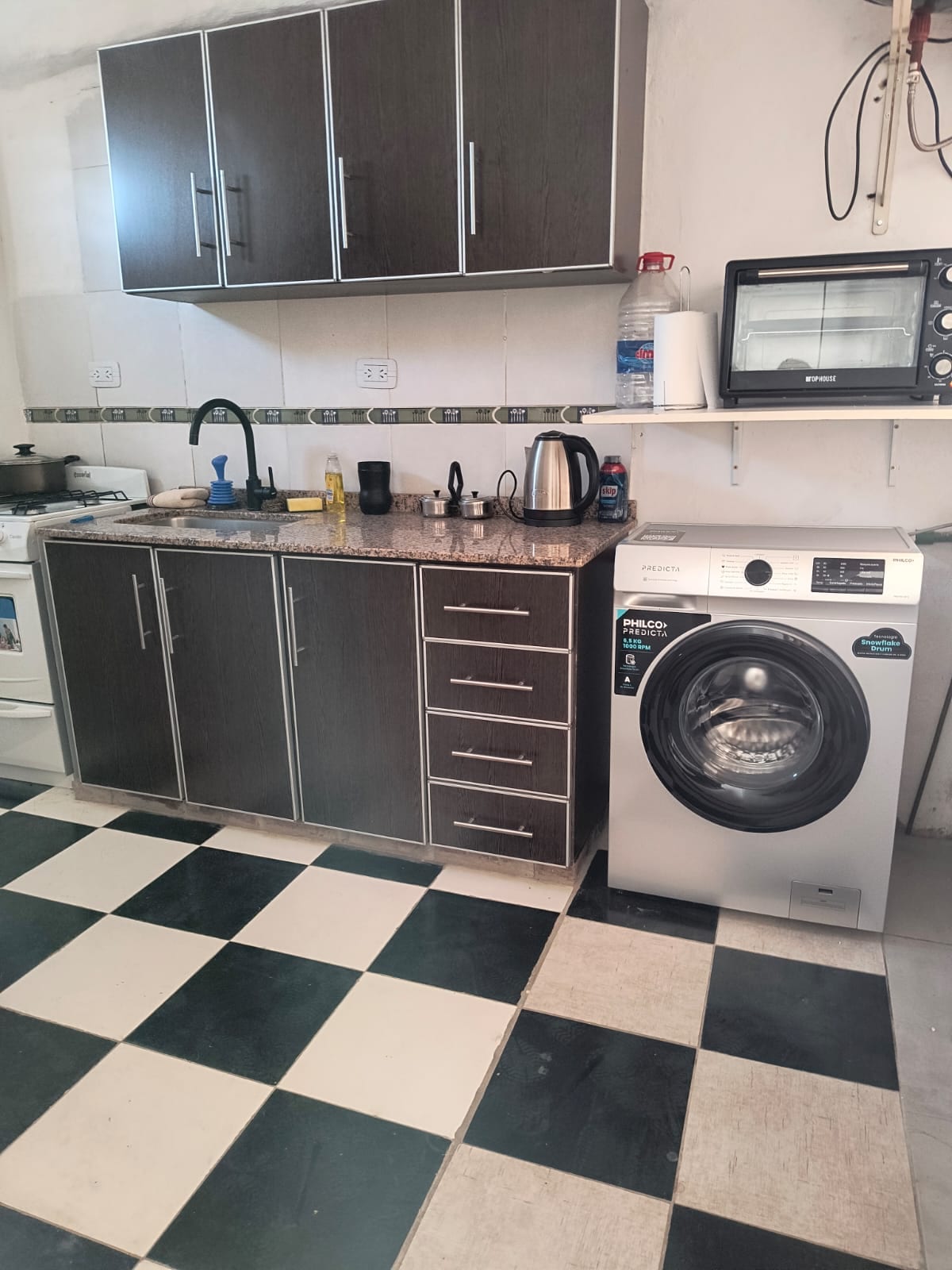 Departamento totalmente terminado, muy lindo y funcional, ideal para una estadía cómoda y tranquila. El espacio (10 x 4 m) está cuidadosamente ambientado con un estilo moderno y minimalista, combinando madera, tonos neutros y buena luz natural. Living con sillón y TV Cocina integrada, moderna y bien equipada, con mesada de madera, anafe a gas y vajilla completa con gran ventanal a un hermoso patio compartido Habitación con cama matrimonial, cómoda y acogedora Baño completo, amplio y moderno
