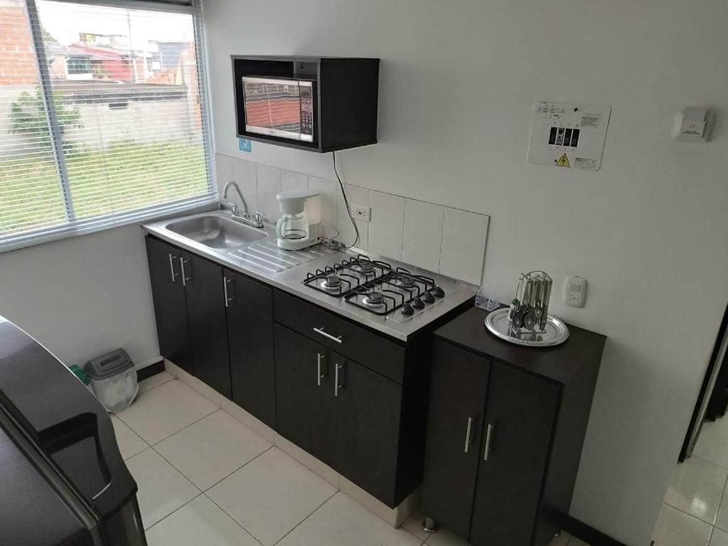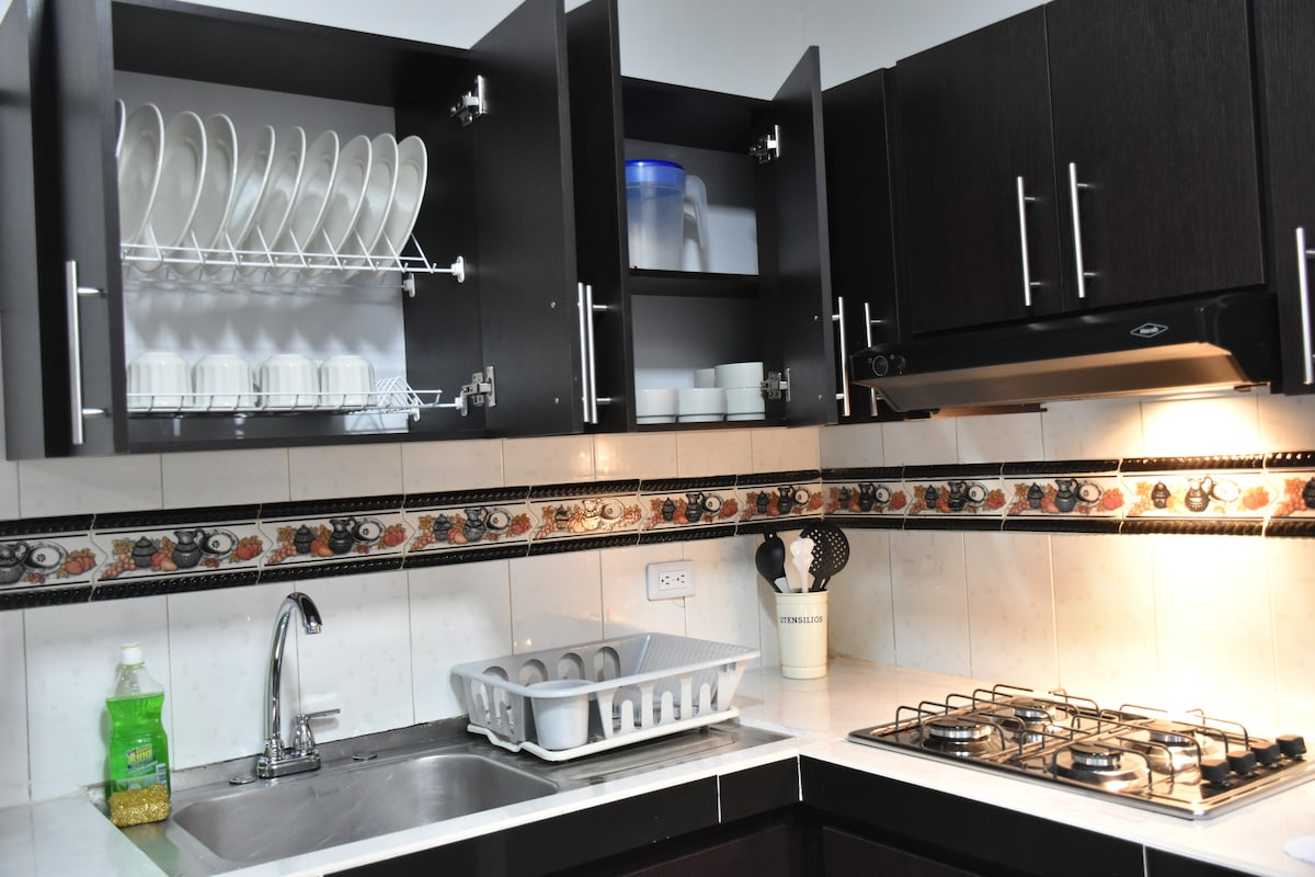 Bonito apartamento decorado y acogedor, con cocina bien equipada y parqueadero privado. Van a poder disfrutar su estadía en el eje cafetero de manera cómoda y tranquila mientras visitan los mayores atractivos de la región. El Parque del Café está solo a 7min. Panaca está a unos 30min y el Parque de la Familia, un parque acuático con canchas de fútbol, está solo a 2min.