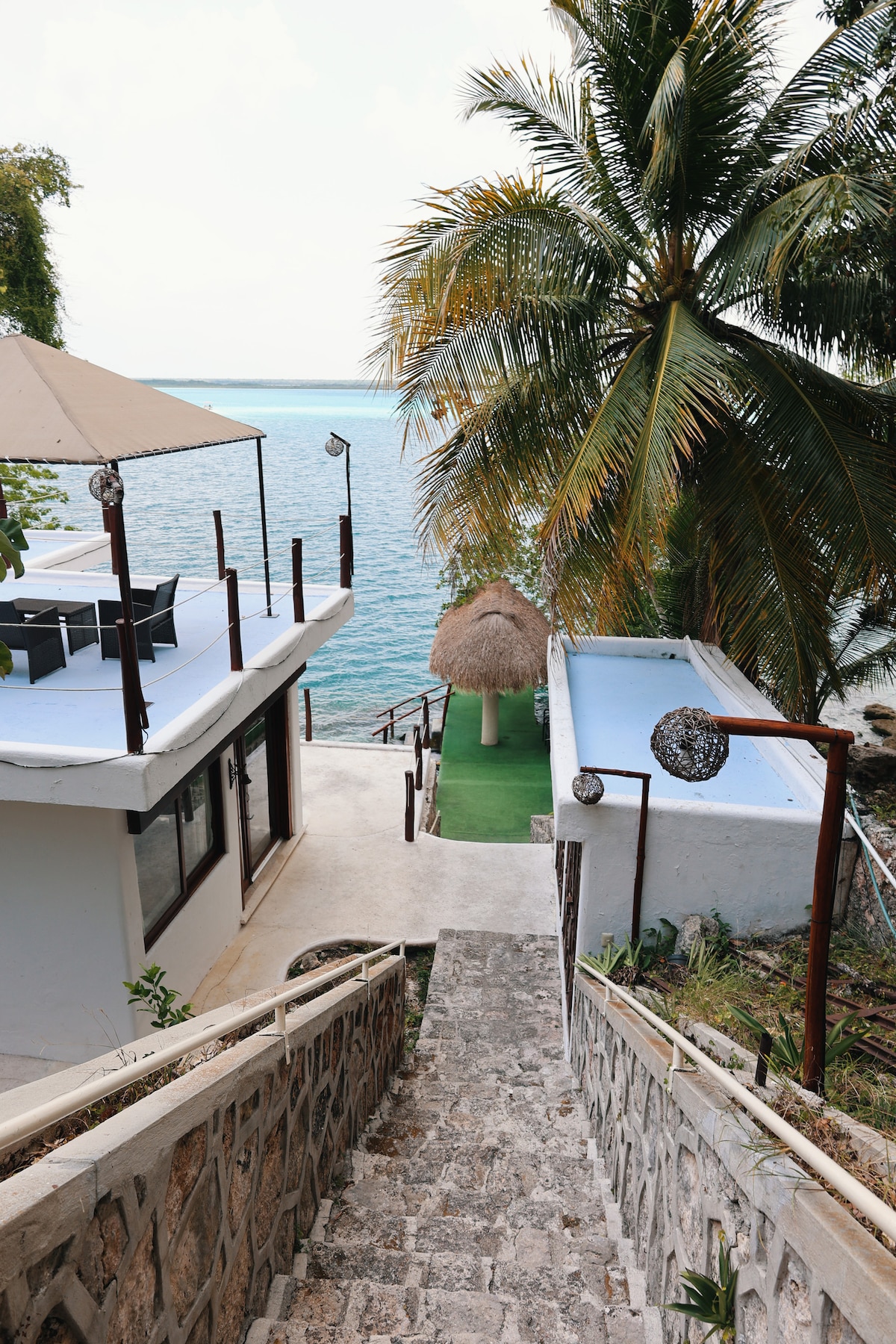ESCONDITE AISLADO FRENTE AL LAGO CON ACCESO PRIVADO a LAGUNA BACALAR- ¡Escápate a tu propio oasis privado! Nuestra cabaña es el mejor escondite, ubicada al final de nuestros amplios jardines y completamente oculta a la vista. Con solo tres villas en nuestros 500 pies de frente al lago, te sentirás como si tuvieras todo el lago para ti. En el interior hay un dormitorio de tamaño completo y un futón doble en la sala de estar. La cocina está totalmente equipada. Aire acondicionado. Gran conexión a internet. Además de un patio privado.