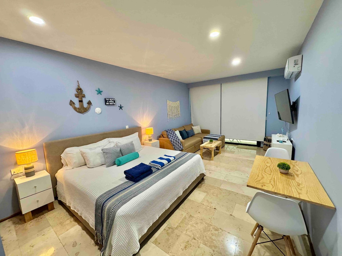 Sumérgete en la experiencia de este estudio a pasos de la playa donde la comodidad, la privacidad y las amenidades se combinan para brindarte unas vacaciones inolvidables en Playa del Carmen. Te estarás hospedando en una zona tranquila pero con muchas actividades y atracciones a pocos pasos. La famosa Quinta Avenida está a media cuadra, ahí comenzará tu aventura en este encantador destino. Continúa leyendo para conocer más de este alojamiento.