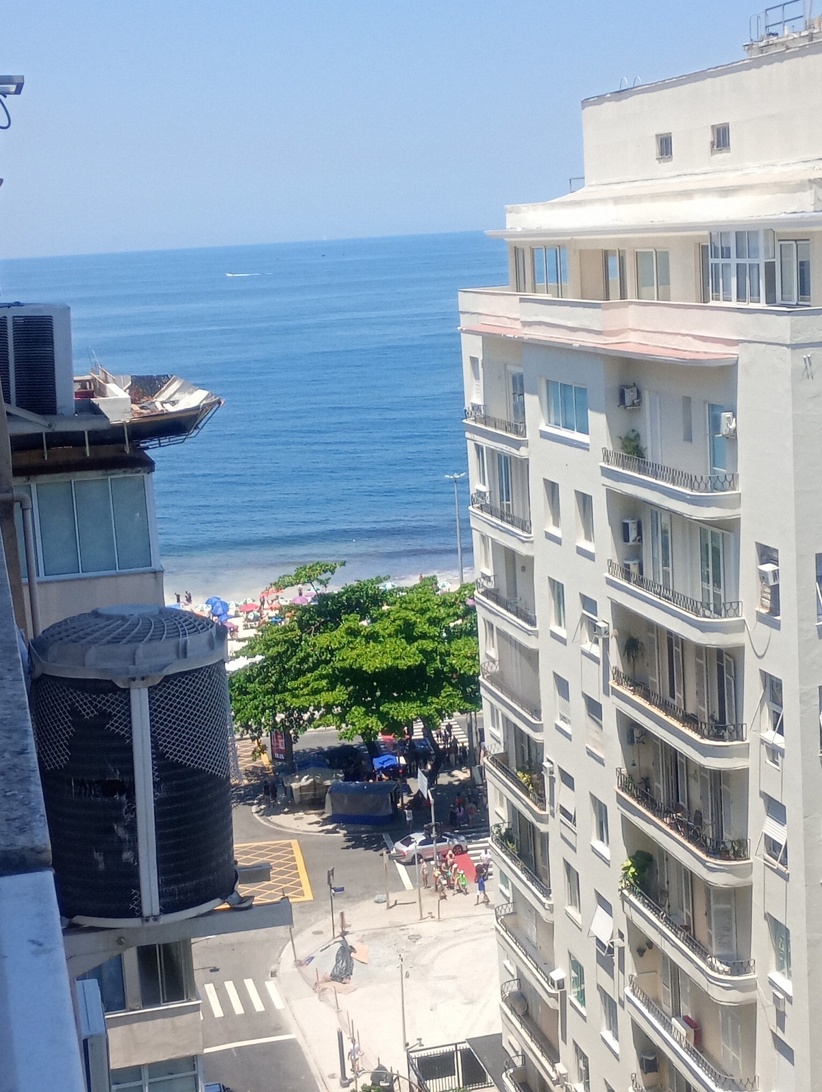 COPACABANA – POSTO 6 ESQUINA DE LA PLAYA Y VISTAS AL PAN DE AZÚCAR Apartamento en la esquina de la Av. Atlantica, en el Post 6, en el noveno piso con dormitorio y sala , balcón con increíbles vistas a la playa y a la montaña Pan de Azúcar. Ideal para dos huéspedes adultos, con cama doble, wifi , TV por cable y Netflix. La cocina está equipada con minibar, microondas, cafetera, hervidor eléctrico, licuadora, licuadora, sandwichera y utensilios generales. No hay estufa ni horno. Dormitorio y sala de estar con aire acondicionado.