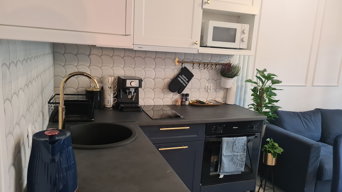 Un estudio acogedor y elegante perfecto como base para explorar la ciudad o para un corto viaje de negocios. En el corazón de Breslavia, a 3 minutos a pie de la plaza del mercado, cerca de innumerables atracciones culturales, gastronómicas y turísticas. Equipado con una kitchenette con platos básicos, cafetera, hervidor de agua, microondas. Cómoda cama matrimonial de 160 cm de ancho. Baño con ducha y lavadora.