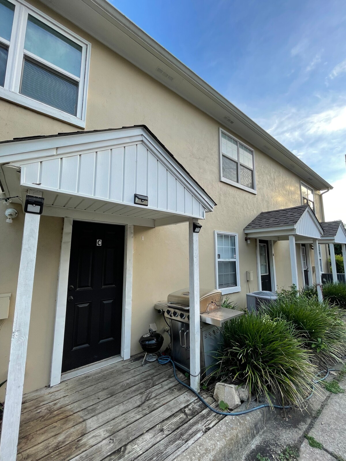 Disfruta de una escapada en esta casa adosada limpia y moderna, convenientemente ubicada. Con 2 dormitorios: uno con una cama tamaño king y otro con 2 camas tamaño queen. Cada dormitorio tiene un televisor inteligente Roku. La cocina para comer cuenta con una cafetería y una selección de té, mesa de comedor para 4 y 3 taburetes. Aparcamiento reservado para 2 coches. A 10 minutos a pie del estadio Doak. También está cerca del centro, el centro de convenciones, restaurantes, el aeropuerto, Collegetown y todos los campus. ¡Ven a ser nuestro huésped! (NO FUMAR en el interior)