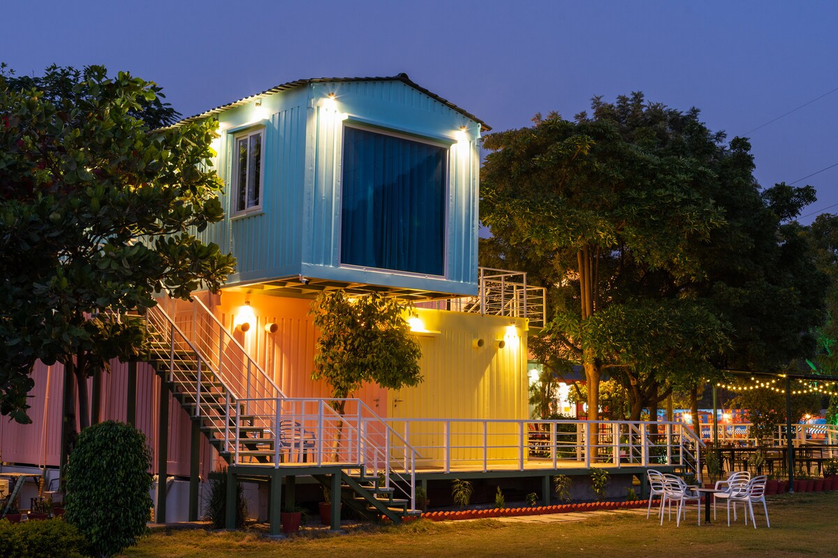 El G Snoozebox es un refugio boutique situado en el regazo de las majestuosas gamas Aravali, que está diseñado como contenedores de envío y fabricado completamente con metal. La idea única detrás del concepto es ofrecer una combinación perfecta de lujo y comodidad. Fue elaborado personalmente por la familia Grewal, teniendo en cuenta el santo grial del Hotel G "¡¡Que todos los que entren como invitados se vayan como amigos !!"