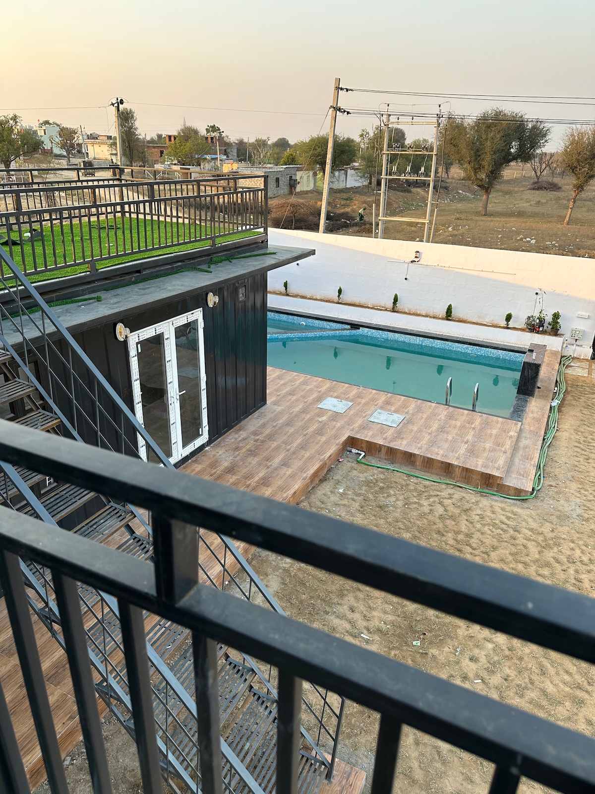 ◆Ubicado en los serenos bosques de Dhouj, perfecto para una escapada pacífica ◆Se extiende a través de 3 acres con exuberante vegetación y espacios abiertos ◆Cuenta con una encantadora casa de barro rústica y un alojamiento único en un contenedor ◆Amplia piscina con un elegante cenador para descansar ◆Zona de estar para relajarse y disfrutar del entorno natural Instalación de ◆Machan en el jardín: ideal para vistas a la naturaleza y sesiones de fotos Hospitalidad ◆de 5 estrellas de primera categoría, siguiendo “Atithi Devo Bhava”