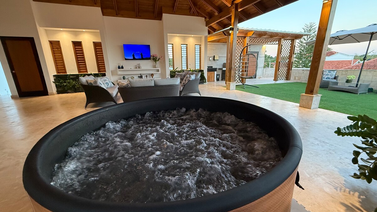 Elegante villa de lujo de 3 recámaras en Casa de Campo (comunidad privada con seguridad 24/7). Cuenta con piscina privada, jacuzzi y personal diario (cocinera y limpieza) para una experiencia tipo resort. A poca distancia de Playa Minitas o recorre el complejo en carrito de golf. Ideal para huéspedes que buscan privacidad, confort y exclusividad cerca de golf, marina, restaurantes y Altos de Chavón. Capacidad para 6 huéspedes.