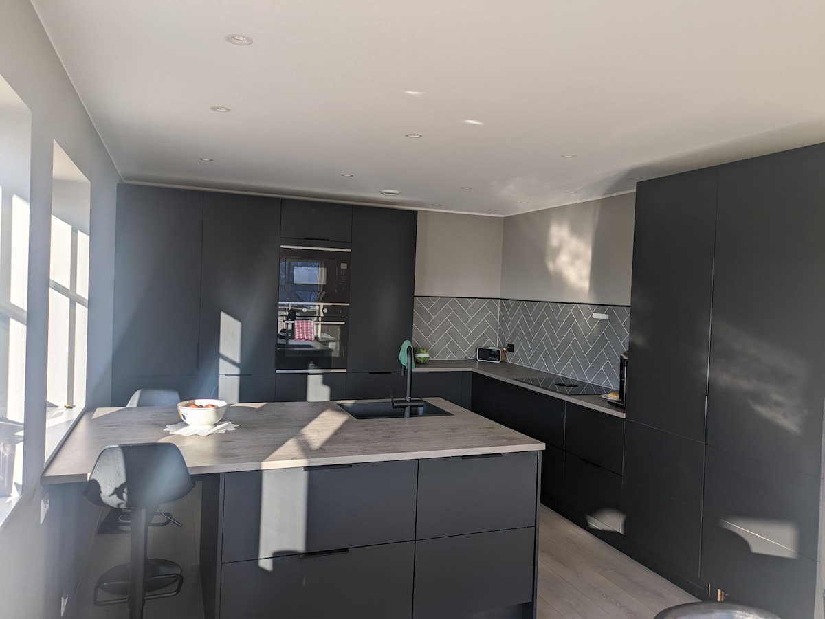 Acogedor departamento con espacio de estacionamiento propio, internet y entrada propia. Calefacción en todos los pisos. Sala de estar con chimenea y pantalla cromática. El dormitorio tiene mucho espacio, buenas instalaciones de almacenamiento y su propia área de oficina. 1 cama de 150 cm y 1 cama de 120 cm, así como una silla que se puede convertir en una cama de 80 cm. La cocina está bien equipada con nevera/congelador, estufa estudio, microondas y, por lo demás, todo lo necesario.