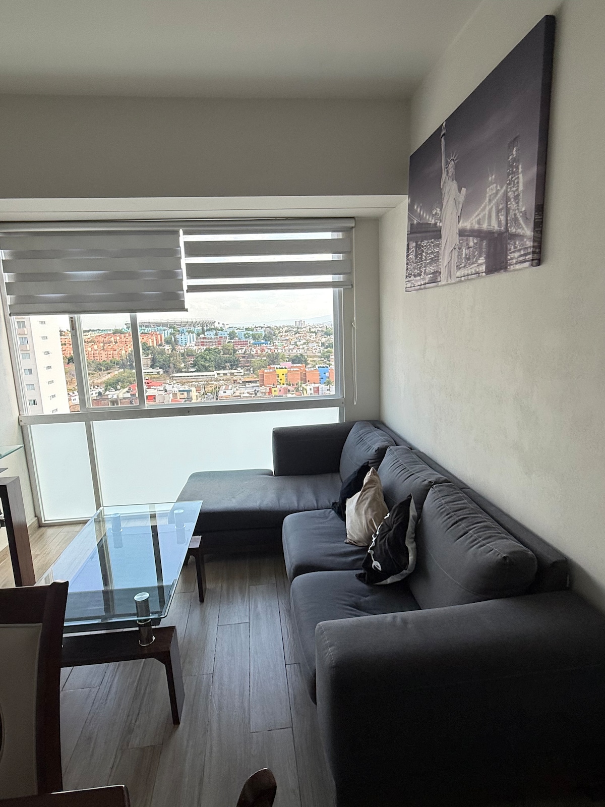 Departamento cómodo y funcional con vista panorámica a la ciudad. Cuenta con 2 habitaciones, 2 baños, cocina equipada, Wi-Fi estable y llegada autónoma. El edificio tiene accesos controlados, estacionamiento, alberca y gimnasio. La zona puede parecer distinta al llegar, pero es segura y transitada, con fácil acceso a vialidades, transporte y servicios. Ideal para moverte libremente por Guadalajara. Encantada de recibirlos, quedo siempre pendiente de cualquier duda!
