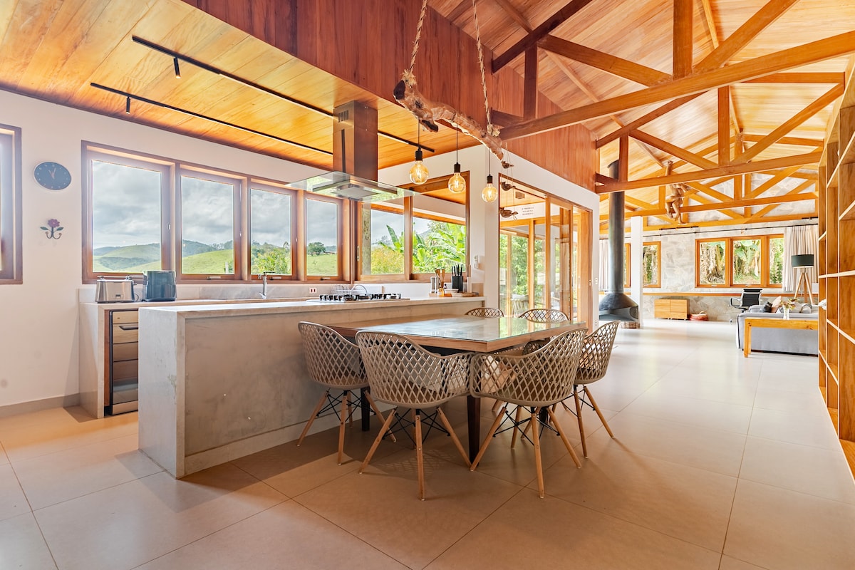 Acogedora y espaciosa casa con piedras y maderas en un proyecto arquitectónico que se integra con la naturaleza del bosque nativo con una vista deslumbrante del río do peixe. La casa ofrece una experiencia de alto nivel en privacidad y tranquilidad, revestida con madera peroba reciclada, la casa invita a relajarse. Prepárate para descansar en medio de la sierra de la Mantiqueira y despertar en un escenario mágico del río Peixe con toda su maravillosa naturaleza. ¡Ofrecemos desayuno opcionalmente!