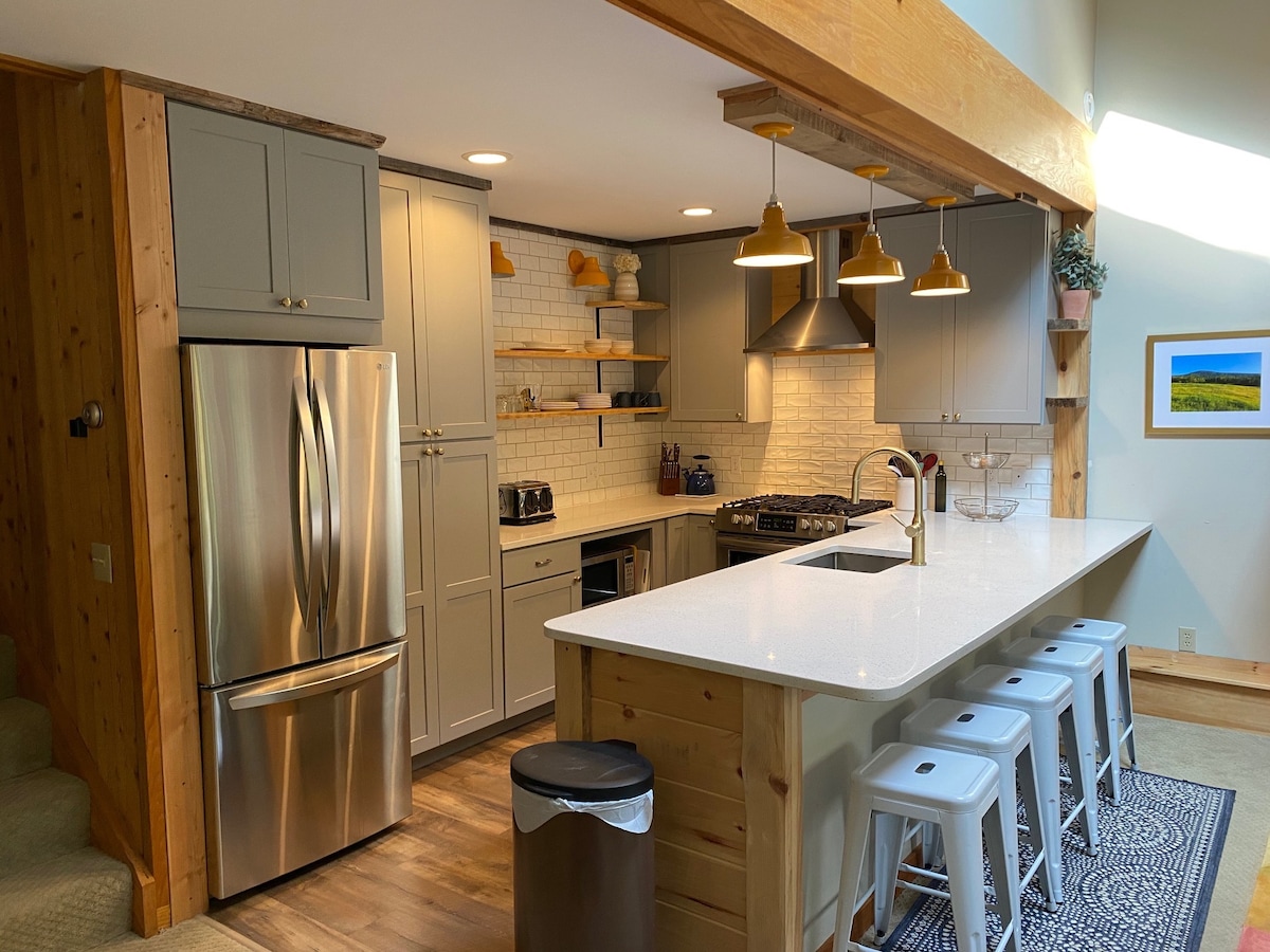 La nueva unidad dúplex 1 está ubicada en medio de la ciudad en Rangeley Lake. A poca distancia a pie de tiendas, restaurantes y a pocos pasos del parque de la ciudad y la lancha. Viene con un bote y tiene acceso directo para vehículos todoterreno y motos de nieve. La montaña Saddleback está a solo 15 minutos. Este alojamiento tiene una cocina totalmente equipada con grandes ventanales con vistas al lago. Tiene dos dormitorios con camas queen y un sofá cama queen en la sala de estar. También tiene 1,5 baños con lavadora/secadora. Se admiten mascotas.