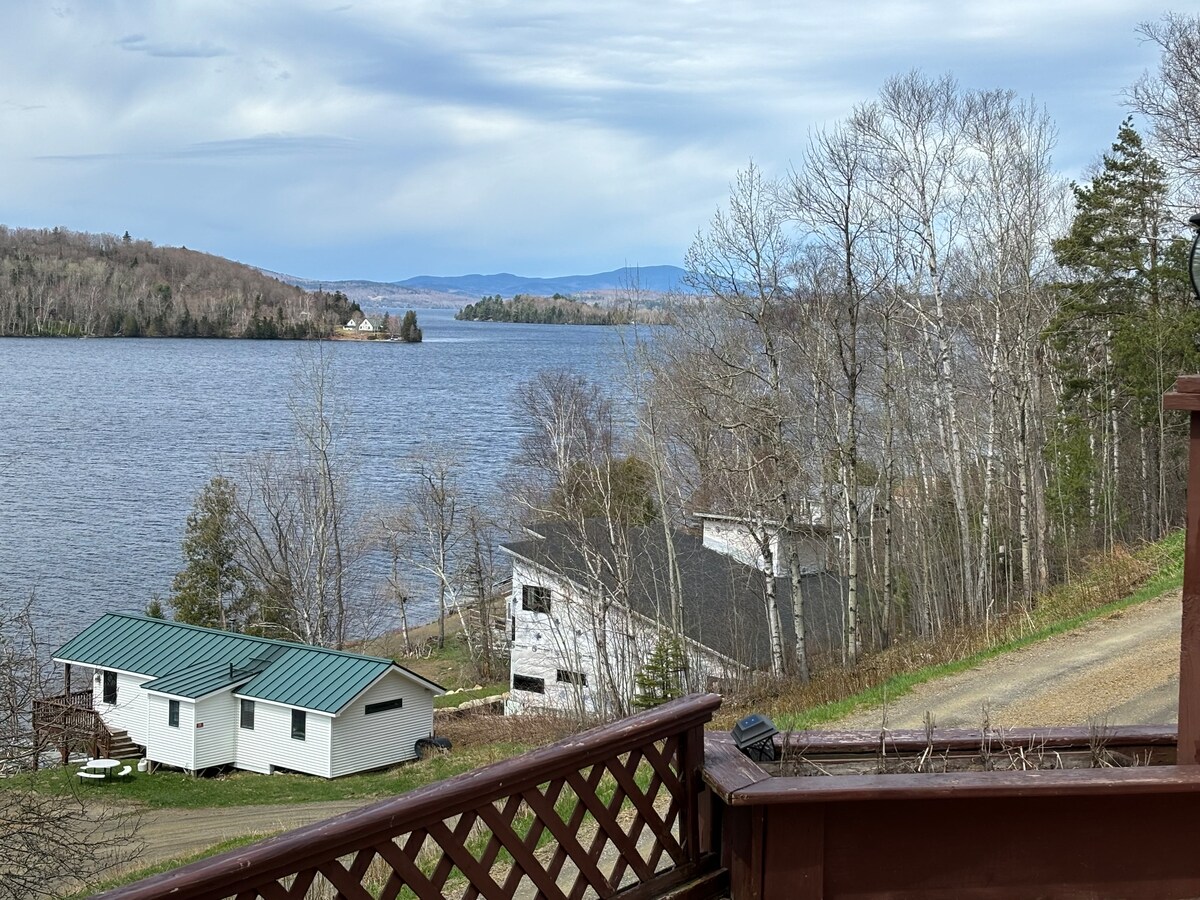 Acogedor campamento en la cima de la colina con excelentes vistas del lago Rangeley y las montañas circundantes. Justo al lado de Main Street y a minutos de la ciudad, es la mezcla perfecta de retiro tranquilo y comodidad. Un dormitorio con una cama tamaño queen, además de una cama individual escondida en el pasillo. Disfruta de una amplia terraza con vistas al lago, ideal para tomar el café de la mañana o relajarte al atardecer. Sencillo, encantador y una gran base para explorar la zona. No hay acceso al lago en el sitio. ¡No se admiten gatos!