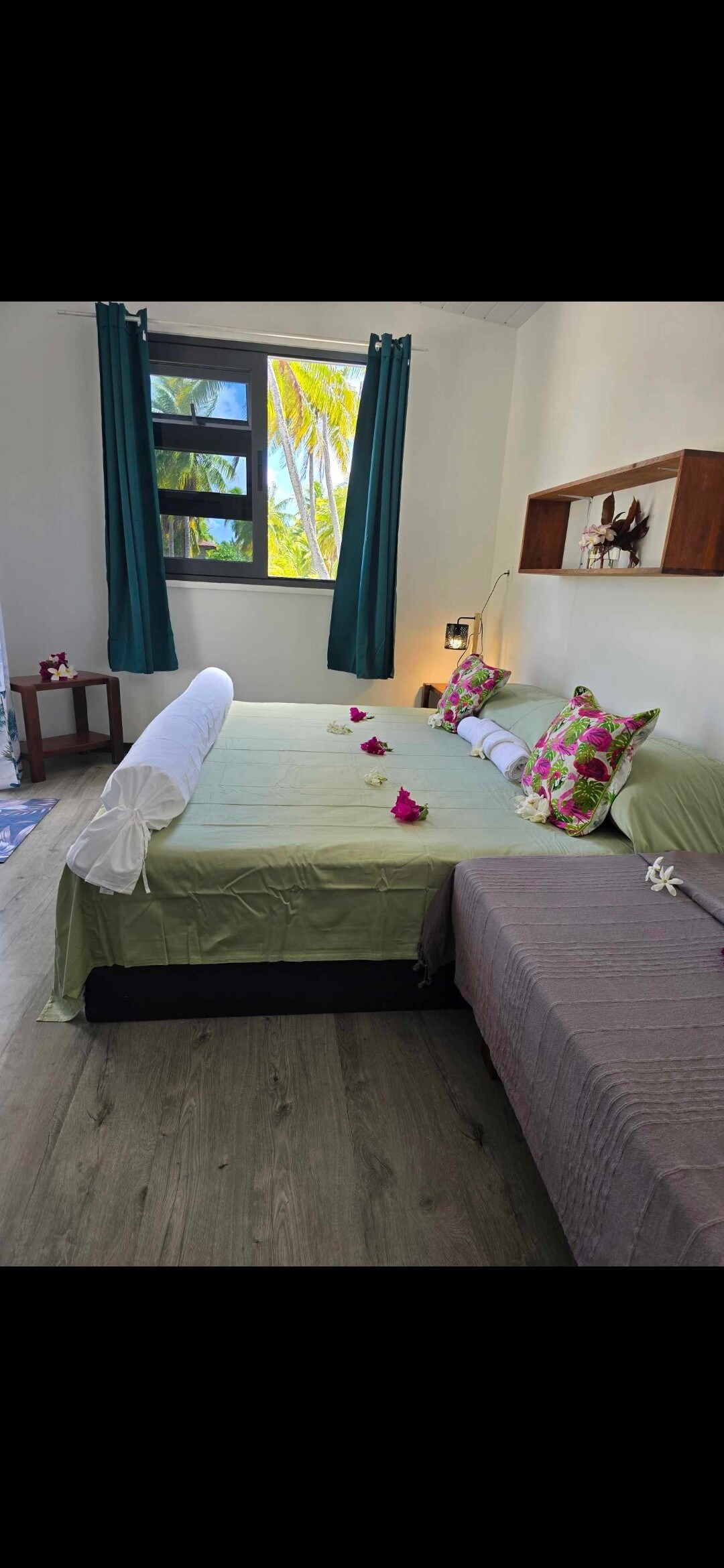 Lugar tranquilo para descansar y a la vez ideal para familias numerosas. La casa se encuentra junto al agua, tiene acceso directo a la hermosa laguna. A pie se puede visitar la bodega de Rangiroa y pasear por el lado del océano del atolón cerca del arrecife. También tiene servicios a poca distancia: farmacia, tienda de comestibles y pizzería... Se le proporcionarán los datos de contacto de un taxi para sus traslados al aeropuerto.