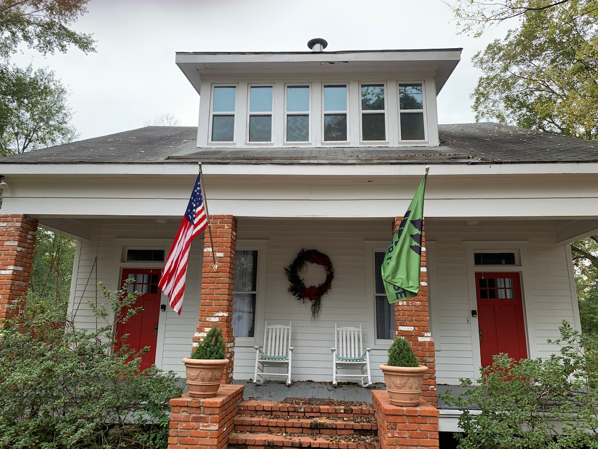 This rustic barn is the perfect place to pause time. With a front porch that’s perfect to watch the day fade away and a back porch to sip coffee on, you’ll love what this soul-giving property has to offer. While you’ll love the outdoor spaces, the indoor is also a Southern treasure with an expansive space, large ceiling fans and wooden charm all around.