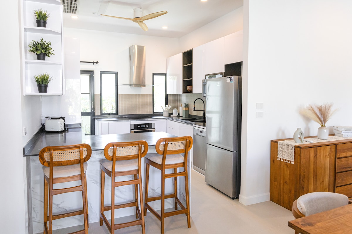 Enjoy a private escape in this newly renovated and fully equipped modern pool villa, located on the West Coast of one of Phuket’s most desirable areas, Bangtao/Layan. Conveniently located just 20 minutes south of Phuket International Airport and 5–10 minutes from Layan Beach, Laguna, Boat Avenue, and Porto de Phuket, the villa offers easy access to beaches, shopping, dining, spas, sports facilities and gyms - all while nestled in a peaceful neighborhood.