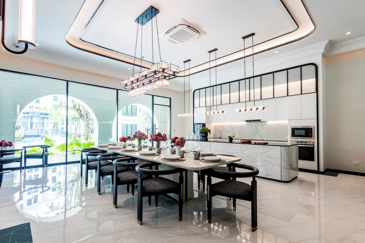 Villa al estilo toscano Saitaan en Boat Avenue Villa de 3 dormitorios. Piscina de sal de🏊♀️ 12 metros - control de temperatura Sala de estar🛋️ muy grande con comedor para 8 personas y TV inteligente 85 Sala de🎦 cine con sonido envolvente: 10 000 estaciones 🍳 Nueva cocina gourmet, electrodomésticos europeos que incluyen horno de vapor y barra de desayuno Entrada 🏠 digital, sin llaves 🎨 Accesorios y pinturas de diseño ! Internet📶 de alta velocidad *** esta villa DE 3 dormitorios ES una VERSIÓN MÁS PEQUEÑA DE LOS 5 dormitorios con las dos habitaciones externas cerradas con llave.