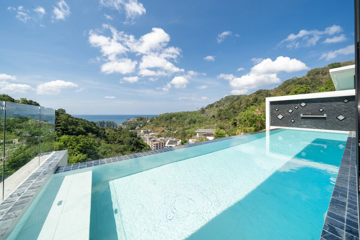 [Selección] Exclusiva villa privada de lujo de cuatro dormitorios con vista al mar U2, piscina infinita de 12 m con vista al mar, cerca de la playa de Patong, desayuno gratuito, limpieza diaria