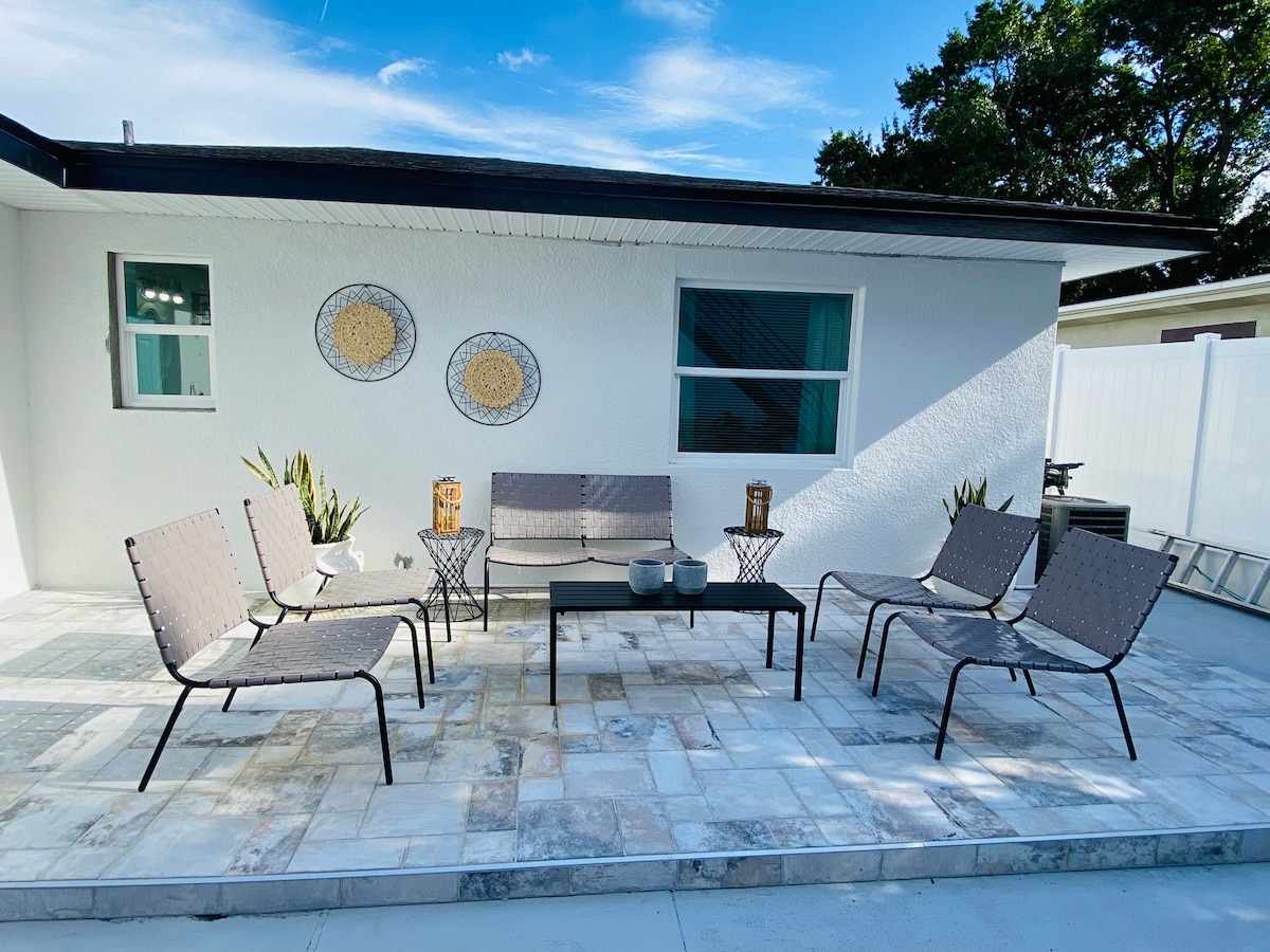 ¡Mantente cerca de todo en esta casa actualizada de 2 dormitorios en Tampa! A solo 2 minutos del estadio, a 7 minutos del aeropuerto y a poca distancia en coche de Ybor, el centro de la ciudad, Busch Gardens y las playas. Disfrute de una cocina totalmente equipada, una sala de estar con sofá cama y juegos, Wi-Fi de alta velocidad con un espacio de trabajo y un patio trasero privado completamente cercado con terraza, asientos y mesa de ping pong. Ideal para familias, profesionales o escapadas divertidas.