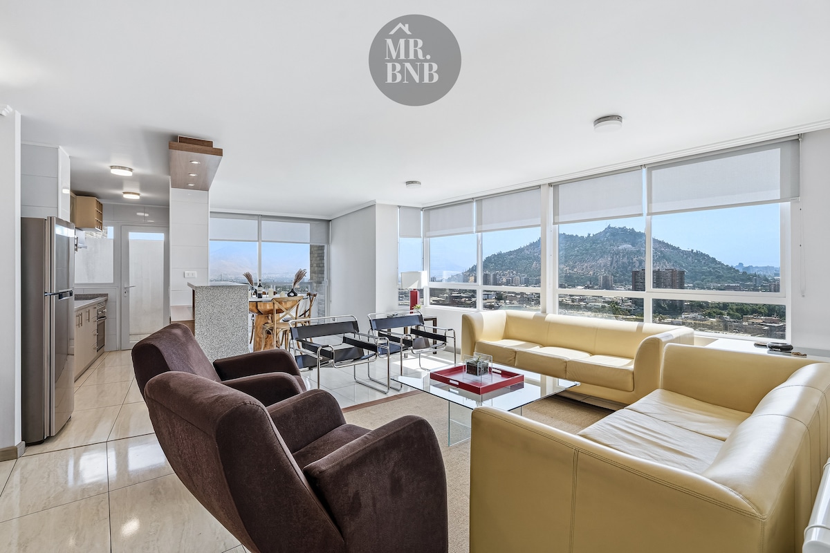 Elegante departamento situado en el corazón de Providencia. Con una impresionante vista a la cordillera de los Andes y al icónico Cerro San Cristóbal. Ubicado a solo pasos del metro Los Leones (Línea 1), mercado urbano tobalaba MUT y del Costanera Center, el centro comercial más grande de Chile. Rodeado de una amplia gama de restaurantes y bares. Ideal tanto para estancias cortas como largas, te ofrecemos un refugio perfecto para explorar Santiago o para relajarte después de un día ajetreado.