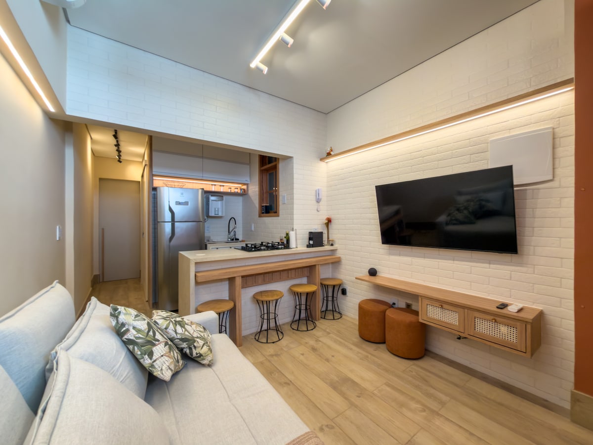 Apartamento de dormitorio individual modernamente reformado, cómodo y lujoso. ¡Convenientemente ubicado dentro de un hotel, a pocos pasos de la playa, restaurantes y del centro comercial Rio Sul! Cerca de los lugares turísticos más populares, al transporte público, en la parte más segura de Copacabana (¡presencia policial las 24 horas en la puerta del hotel!). Esta unidad cuenta con todos los servicios del hotel, incluido el servicio de limpieza diario incluido en la tarifa por día. Impresionante mezcla de lujo moderno y arquitectura única con la privacidad de una vista al bosque