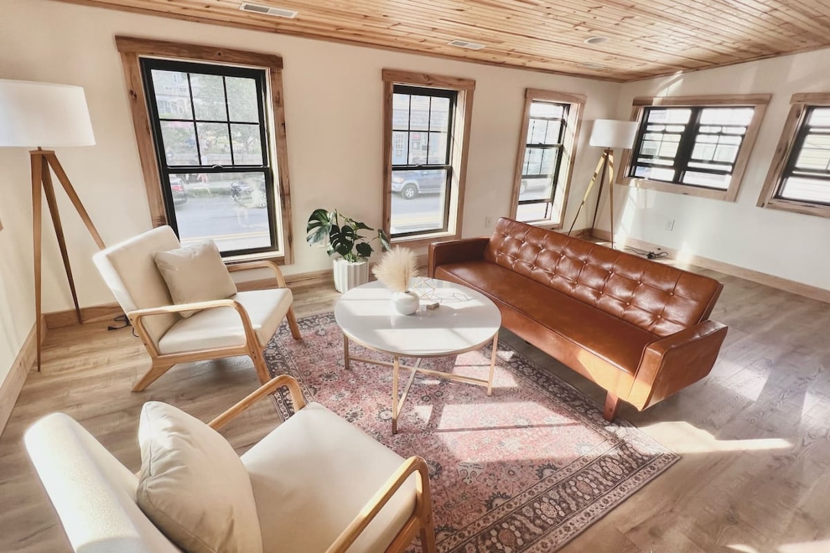 Situado en un edificio histórico en la calle principal y adornado con suelos de madera de 135 años, carpintería original, arte local, enorme ducha de lluvia y vistas al bosque, este piso de buen gusto parece transportarte a una pensión del siglo XIX. Con café expreso, galerías, música en vivo, tiendas, comida y bebidas a pocos pasos, tienes los bosques y un pequeño paisaje urbano a solo unos pasos de tu puerta. Este apartamento se ofrece en Dandy Flats, una posada restaurada con cariño.