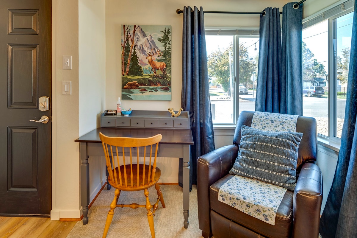 ¡Bienvenido a nuestra acogedora casa de campo de Redmond, ubicada en el corazón del centro de la ciudad! Disfruta caminando hasta cervecerías locales, restaurantes y tiendas, todo a solo unos pasos. Este acogedor espacio ofrece una mezcla perfecta de comodidad y conveniencia, ideal para parejas o viajeros solitarios. Relájate en la acogedora sala de estar después de pasar un día explorando el centro de Oregón. ¡Experimenta lo mejor de Redmond justo frente a tu puerta! Convenientemente cerca de: A 15 minutos de Smith Rock A 25 minutos de Bend A 8 minutos del Centro de Exposiciones y Feria del Condado de Deschutes