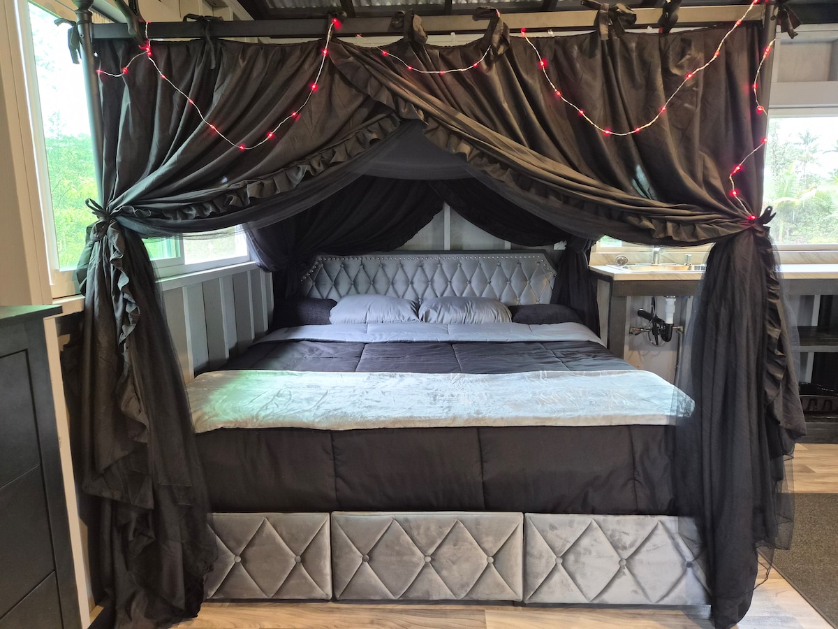 ¡Una hermosa escapada rodeada de naturaleza en una granja de cacao! Cabaña de un dormitorio + loft, cocina completa, baño, lavadora/secadora, lanai soleado, en nuestra granja de permacultura fuera de la red de Big Island. La cabaña está enclavada en un bosque de alimentos a unos cientos de metros de una impresionante cascada con un agujero para nadar en un tranquilo bosque de bambú. Una cama tamaño king en el dormitorio, dos camas individuales en el loft, que tiene techo bajo y se accede por escaleras estrechas y empinadas. Entrada gratuita al jardín botánico. ¡Huevos orgánicos, chocolate casero en el puesto de la granja!