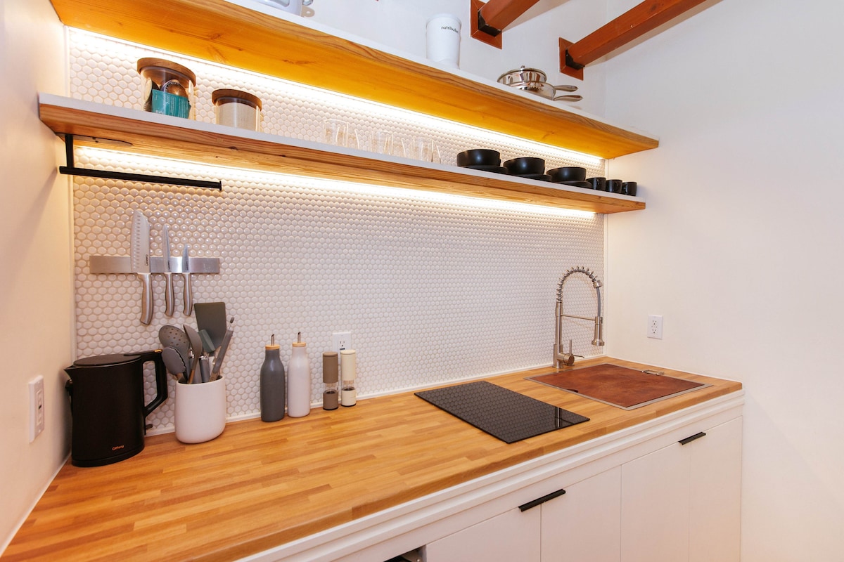 La casa Oma'oma'o, que debe su nombre a los tonos verdes tropicales y las cascadas que rodean esta vivienda natural, cuenta con vigas orgánicas y acabados de madera. Esta nueva casa hawaiana está amueblada con servicios cómodos y una decoración espaciosa pero minimalista. Explora la magia del este de Hawái desde nuestro hermoso santuario en la selva. Los toques ascéticos de los lavabos de bronce, el arte local y la carpintería personalizada seguramente te sumergirán en las vacaciones tranquilas que estás buscando. Puedes acceder a la cascada de agua de manantial directamente desde la propiedad y darte un baño. Permisos: STVR-19-350887 NUC-19-552 Te encantará lo abierta y luminosa que es esta casa. La iluminación natural llena todas las habitaciones. La construcción de esta casa fue diseñada con especial atención a cada detalle. Los lavabos están hechos de hermoso cobre, todos los armarios fueron hechos por un fabricante de muebles local con hermosas maderas nativas. Hay muchos lugares acogedores en toda la casa para relajarse y descansar y simplemente disfrutar de las increíbles vistas a la selva. Desde el interior de la casa hasta el exterior en los lanais (balcón hawaiano), puedes descansar cómodamente. ¿Necesitas sumergirte en una bañera de hidromasaje extragrande con chorros? Si es así, lo tenemos cubierto. Disfruta de tu propia experiencia de spa personal en la suite principal, que también cuenta con ducha a ras de suelo, lavabos dobles y zona de tocador. ¿Te gustaría explorar la abundancia de productos locales y carnes frescas que ofrece la isla de Hawái? Si es así, tenemos todo lo que necesitas en la cocina para preparar banquetes de estilo local en casa. También estás justo en la ciudad de Hilo y tienes fácil acceso a algunos de los mejores restaurantes de la isla. Ambos dormitorios tienen colchones de espuma tamaño king con mantas y almohadas adicionales. En la suite principal de arriba, hay un poco de espacio para tu ordenador, diario, arte o lo que quieras. También tienes un increíble lanai privado desde la suite principal. Las vistas desde aquí arriba podrían tentarte a no irte nunca. Si te apetece dar un pequeño paseo por la selva, puedes nadar en el hermoso manantial de agua dulce y acercarte a la cascada durante todo el año. Hay un sendero bordeado de palmeras desde nuestra propiedad que te llevará hasta allí. Tienes acceso completo a la casa, la propiedad y la hermosa cascada en la que se puede nadar. Actualmente vivimos en California, pero te proporcionaremos nuestros contactos locales cuando se confirme la reserva. Siempre puedes ponerte en contacto conmigo por correo electrónico, mensaje de texto o llamada y te responderemos de inmediato y te ayudaremos con lo que necesites. Disfruta de la comodidad de la llegada y salida autónomas. Situado en el barrio de Reed's Island y rodeado a ambos lados por ríos, arroyos y cascadas, camina por la zona y admira las casas históricas. La ciudad de Hilo y las playas están cerca, y el Parque Nacional de los Volcanes está a 30 minutos. Hilo y el este de Hawái son la opción perfecta si quieres vivir una auténtica experiencia hawaiana. También puedes explorar los telescopios más avanzados del mundo en Mauna Kea y nuestras hermosas playas locales de arena negra de agua salobre. Para acceder a los destinos locales necesitarás un coche. Caminar desde la casa es bastante agradable, pero es más ideal para hacer turismo. Ten en cuenta que el patio todavía está en obras y, por lo tanto, es un poco difícil moverse por él. Además, como nuestro huésped, debes aceptar el 100 % de responsabilidad de tu persona y tus posesiones y liberar todas las responsabilidades del propietario.